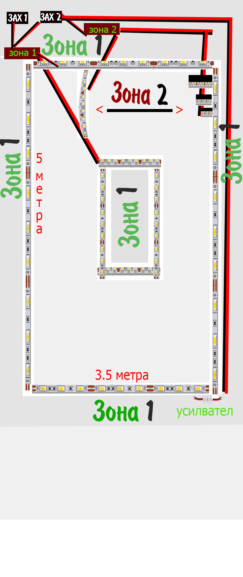 Как ще стане свързването защото ЗОНА 1 е горе долу 16 метра и едното захранване няма да стигне да го захрани и трябва към двете захранвания да е свързано с 1 контролер за ЗОНА 1