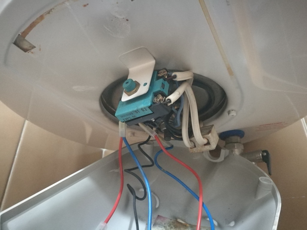 Забелязах, че покрай пусковото копче на бойлера има ръждива струйка и капе леко вода вчера вечерта.Веднага спрях тока, като почнах да търся гаранционна карта. Не успях да открия гаранционна карта, а в сервиза ми казаха,че я искат. По думи на баща ми бойлерът трябва да е над 10г. /съмнявам се, но не помня кога го сменяхме/. Реших да отворя капака. Изглежда капсулован като няма видими следи от пробив на уплътнението при нагревателя. Видимо капе при очертания в елипса отвор за захват на пластмасовия капак. Има всички признаци на пробив във водосъдържателя.