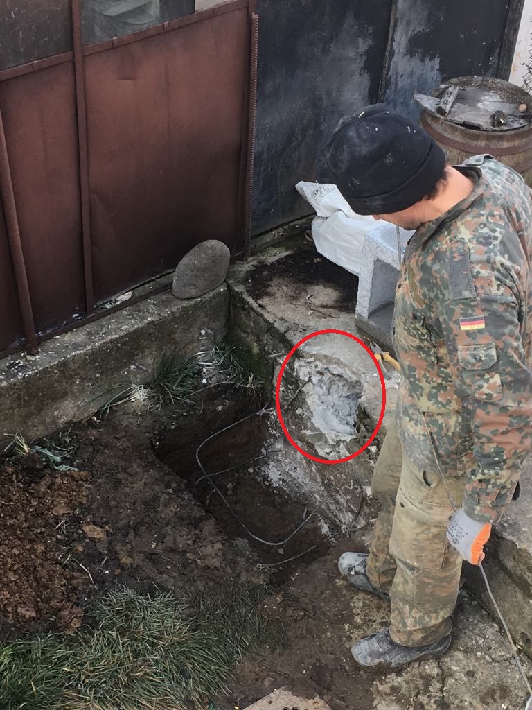 Спрете зидането. Откопайте около основата във трите посоки поне по 50-70 см ( то в четвъртата посока няма как да копаете, защото там е котелното), вземете мощна пробивна машина и пробийте 10-20 отвора ф18-20