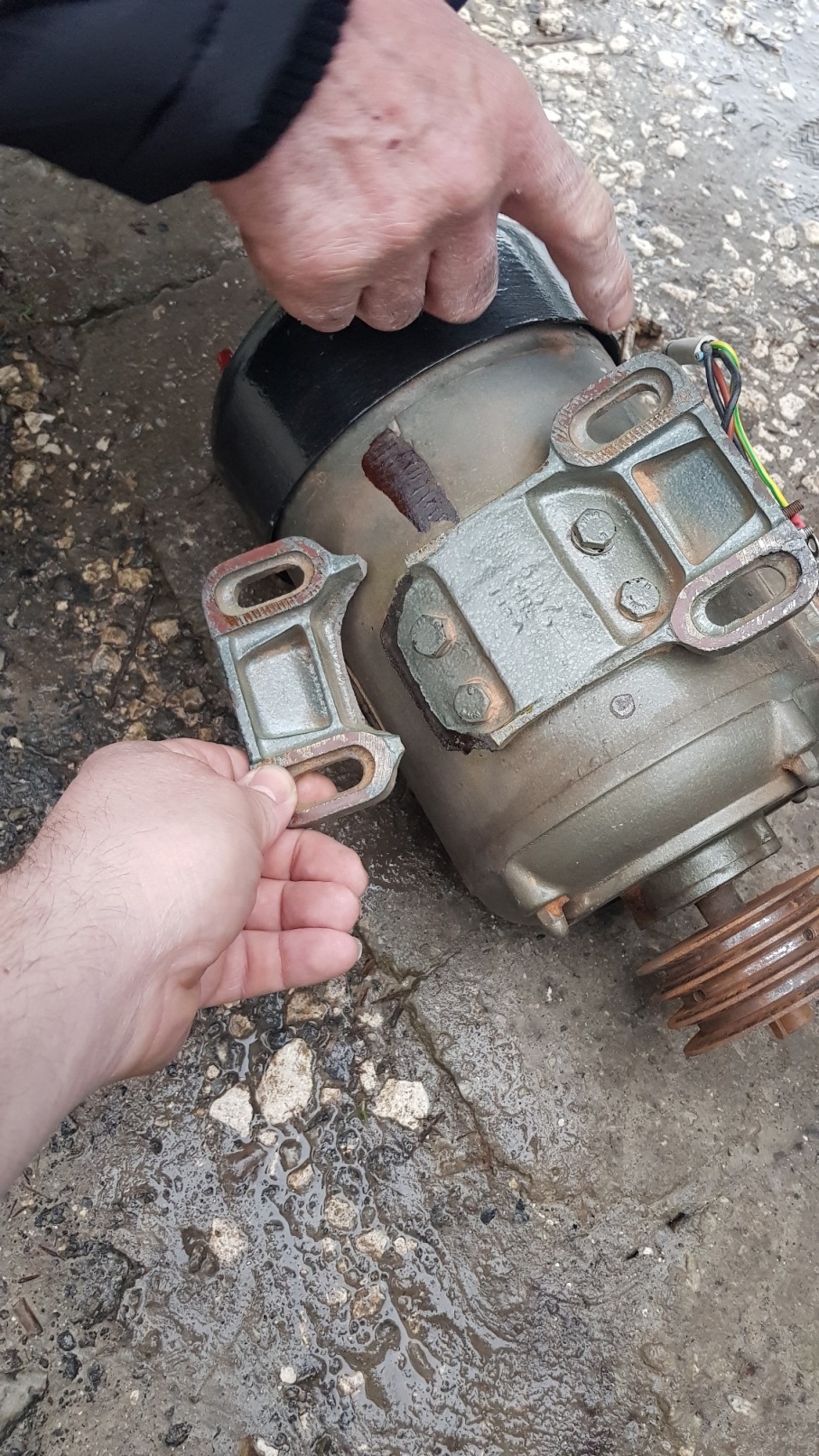 След всички перипетии пристигна, макар и с липсващи Елементи. Една част от линеала, единият водач на линеала и някой друг винт. Днес реших да започна работа по него. Първо смъкнах мотора защото имах уговорка със съфорумник да ги завъртим, защото нямам трифазен ток. Оказа се , че са строшили при транспорта единият държач на мотора :