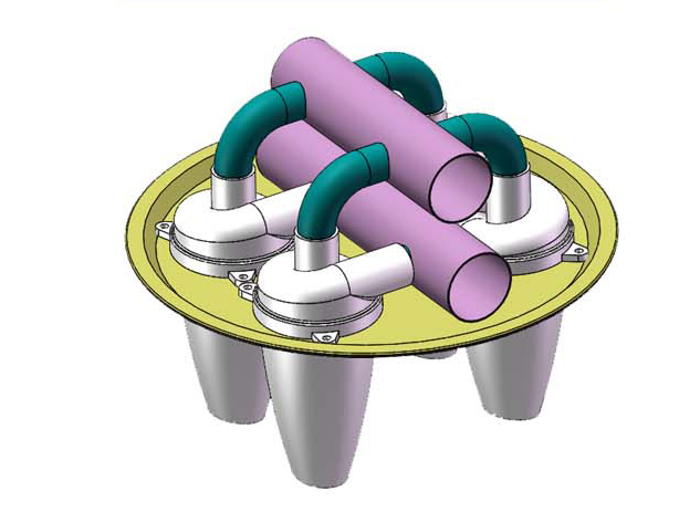 Бе да ти кажа - нищо идейно и яко няма. 4 циклона, свързани паралелно. При последователно ефекта би бил толкова по-добър, че 2 последователни циклона биха били достатъчни за по-добро пречистване.