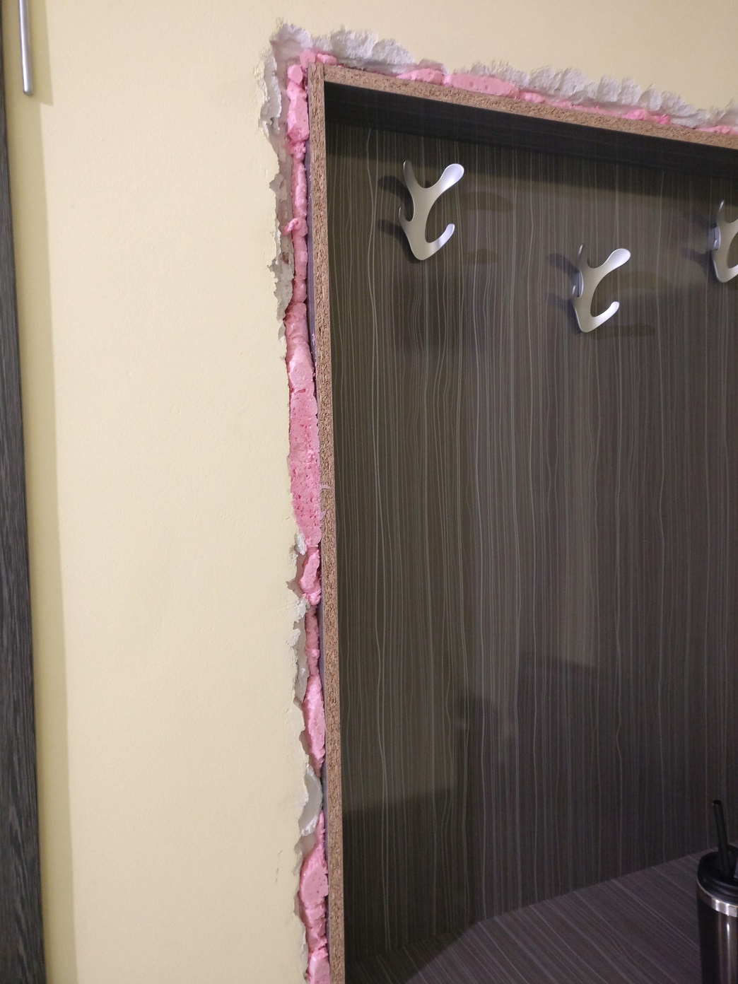 Леко съм го вградил в стената и сега остана да залепя первазите, за да стане по-красиво.