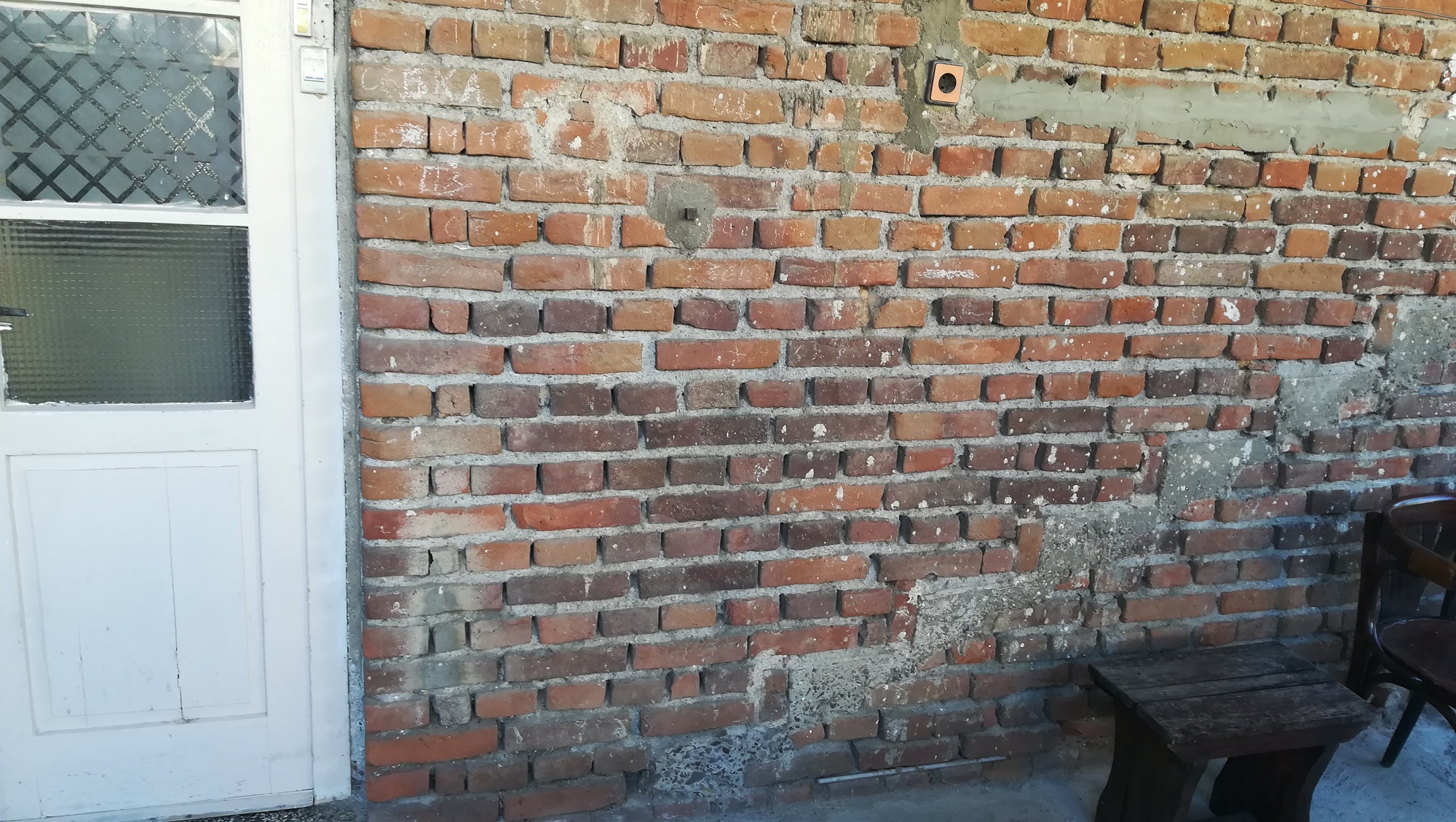 Хм, сега докато снимах и излезе проблем..... Вратата няма да се събере на височина заради плочата от вътре.Остава варианта да е след плочата ...... дори и да не мога да бутна сега стената , ще е добре да знам какво трябва да се направи преди да е бутна ?????