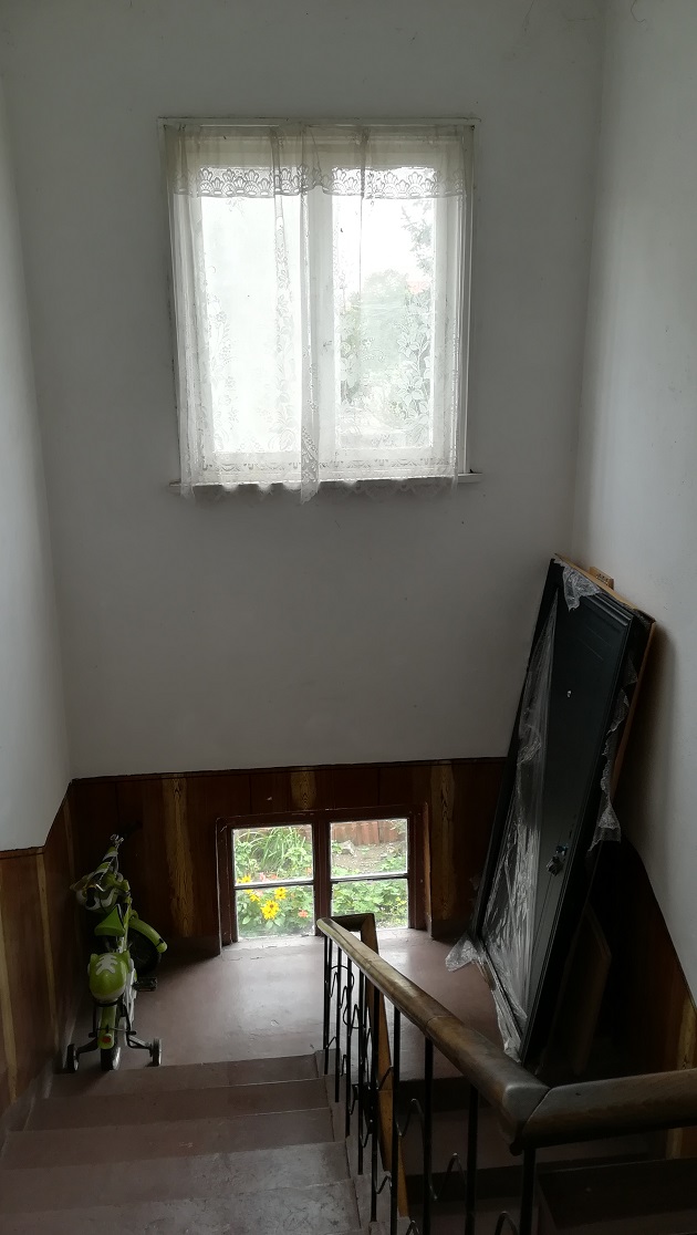 Значи да , ще има зидария между двете врати.Погледнато от вътре , веднага като излезеш от вратата в дясно , там се намира кенефа на 1-ви етаж. Искат да си го затворят и да имат и те врата за да излизат от там. Тази зидария която ще затваря двата входа трябва да започне от лявата страна на която ще е хваната вратата. Може би тя ще е точно там където свършва плочата до долу до първото стъпало за нагоре.Тоест там където свършва старата врата погленато от вътре в ляво то там ще има стена разделяща двата входа.