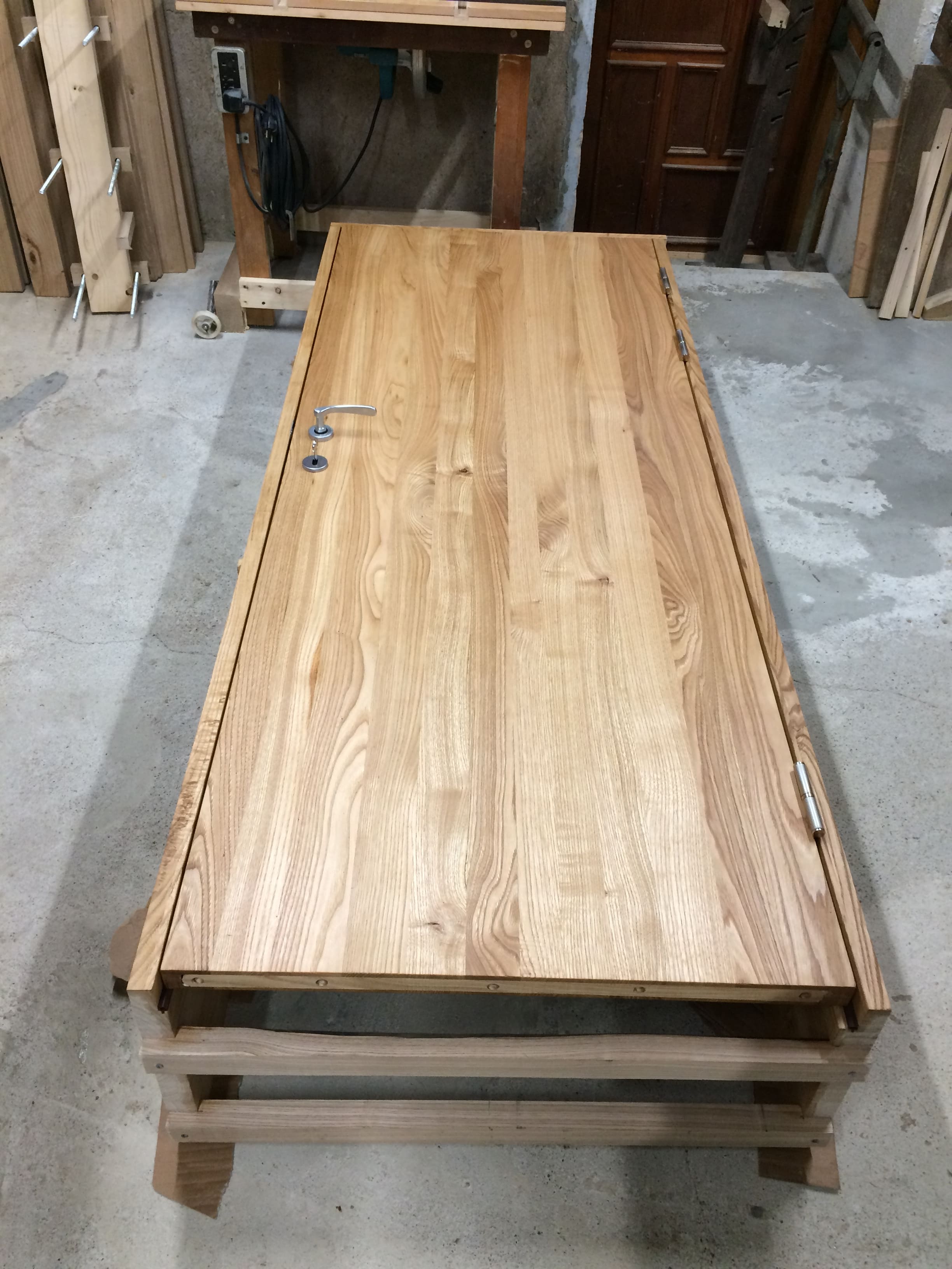 Една интериорна врата от об. кестен. Като за първо /по-сериозно/ изпълнение от моя страна съм относително доволен, все пак е за лична употреба. Разбира се, че не е изработена днес :-D :-D :-D