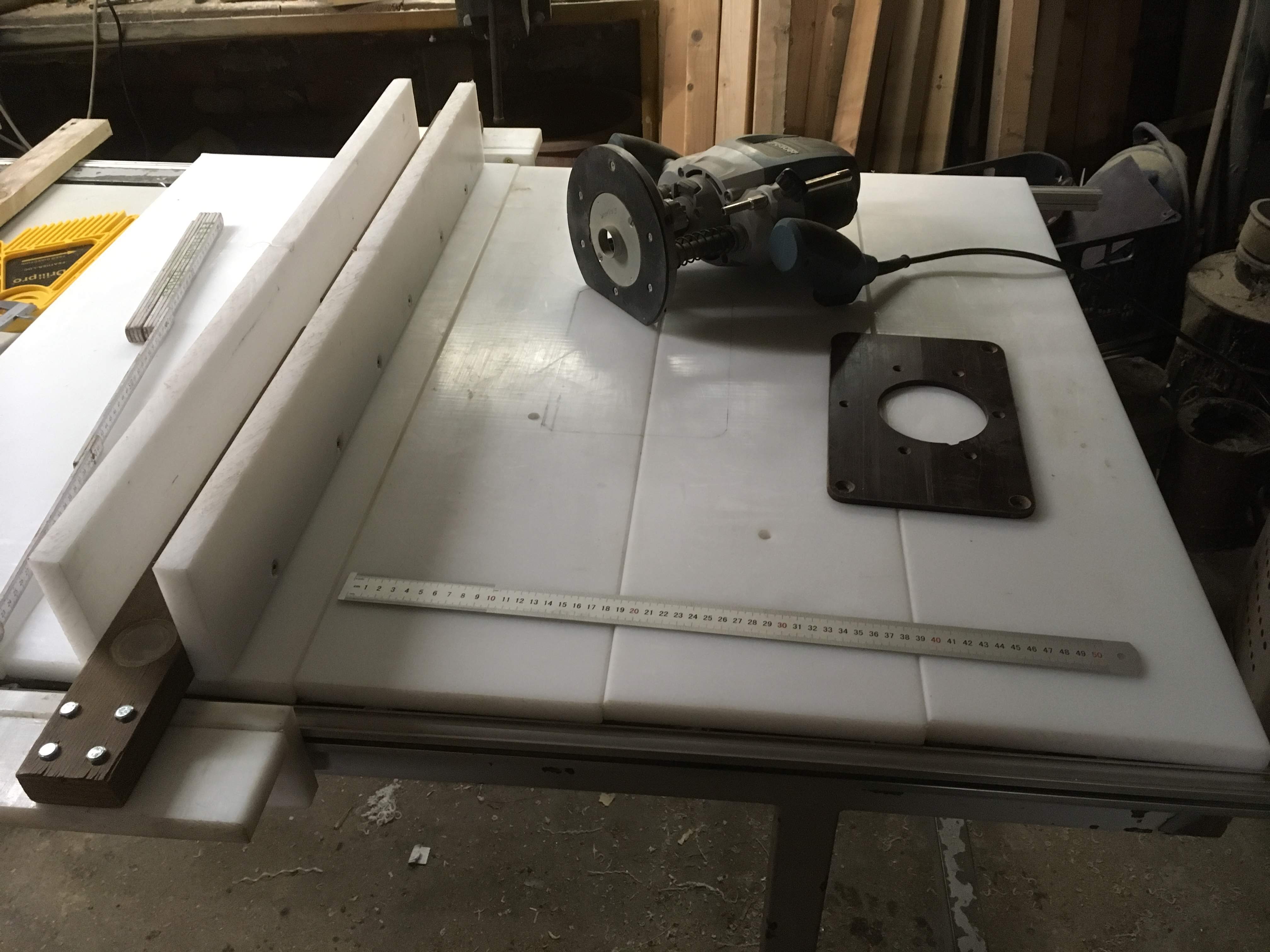 Днес това успях да направя. От няколко месеца се каня да го започна. Днес намерих време и съм доволен от себе си! На клиповете е линеал за фрезата ми, която ще монтирам на тази маса,(вероятно след време ще монтирам и цикуляра на същата маса), а на снимките е началото и края на една летва 1,20м, която разбичих, след реглаж на тази скромна машинка: