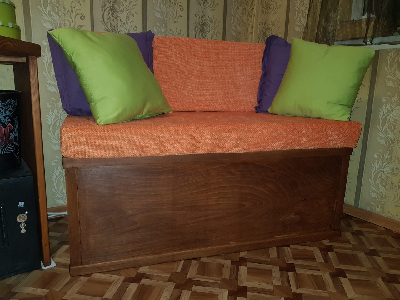 Най-накрая тази година и аз да "извадя" нещо по-голямо от работилницата. Миндер за в кухнята. Изцяло буков. Шлайфан до 400. След това 2 слоя байц натурален от Вальо. След това 2 слоя ленено масло, като пршлайфам с 400 шкурка между нанасянето. И накрая 1 слой вакса натурална за външно импрегниране ( такава имах ) :