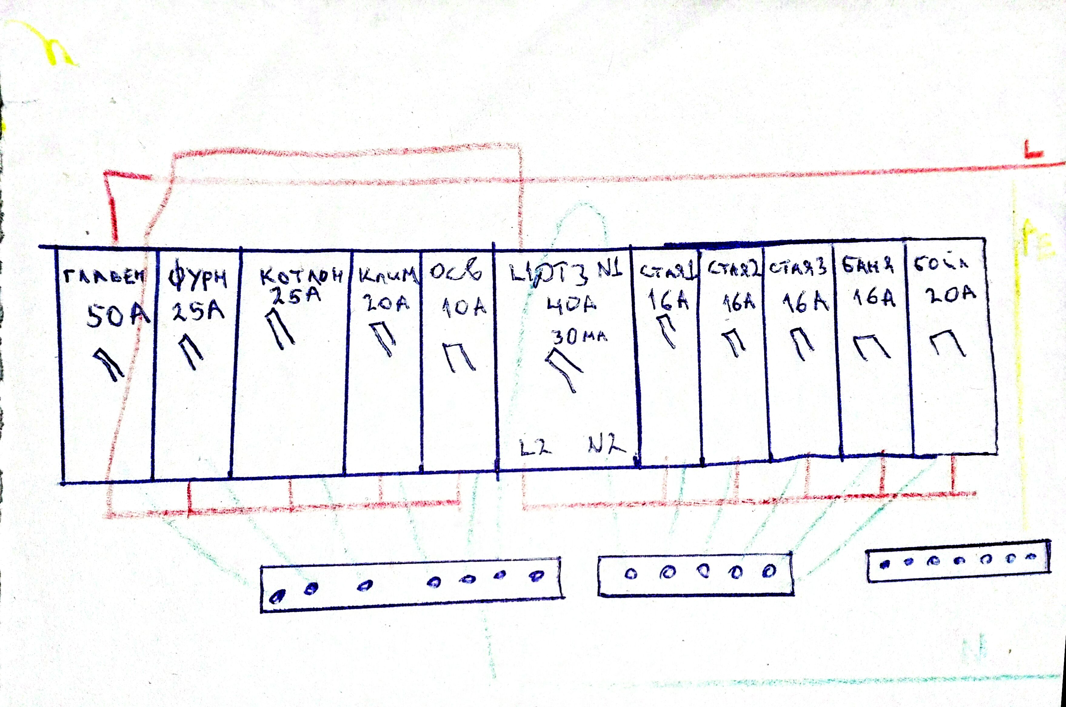 Апартамента е двустаен, таблото е вградено от строителя (елмарк) -12 позиции.Прилагам схема. Всички кабели са 2,5кв.мм, освен на осветлението 1,5кв.мм, като кръг бойлер, фурна, котлони, климатик и баня( 1 извод, предвиден за пералня ) СА ДИРЕКТНИ. Имам желание за повече дтз, но нямам място, а комбинираните са ми скъпички.