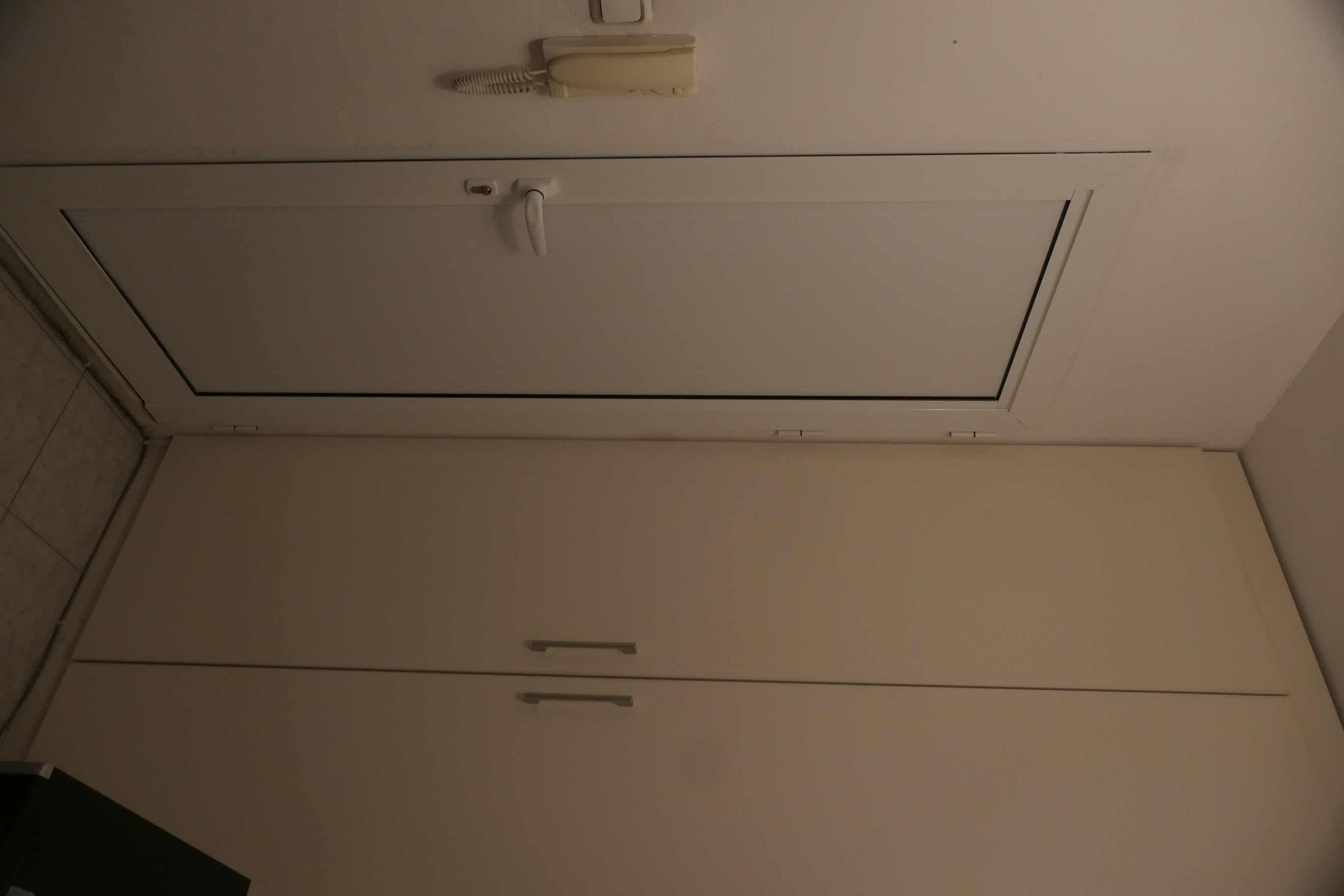 Слагам снимка - ключа а на нивото на домофона, но зад пантите. Талашит няма, само ПДЧ, вътре има рафтове, не важи да се пробива.