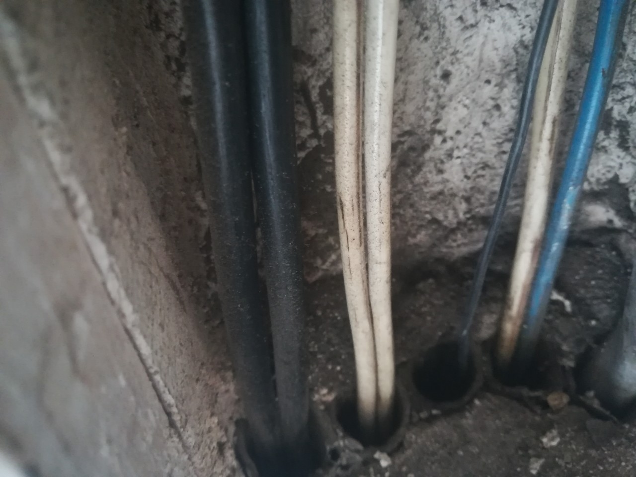 Само между първия етаж и таблото не съм прекарал водач.След като смениха таблото с ново, над него има поставен ламаринен капак , който мисля може да се свали, след като се отключи външната врата на ГРТ, за да вкарам кабелите в таблото.