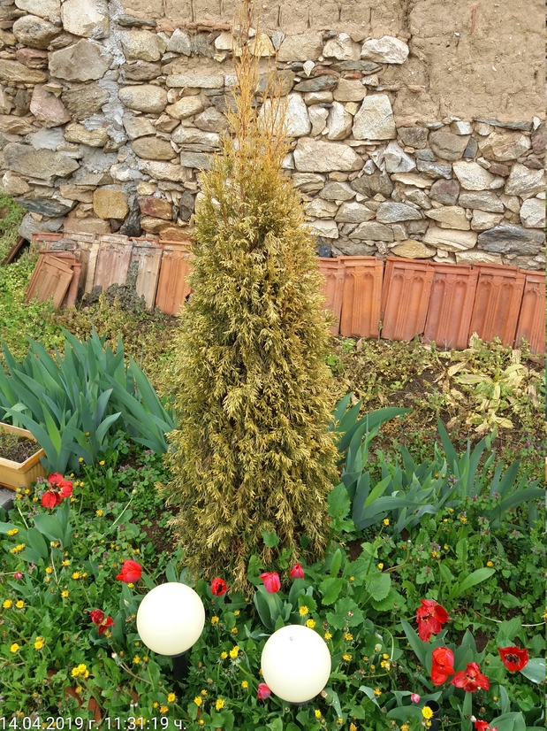 Здравейте! Реших да използвам темата на колегата за моя проблем. Имам 4 туи, на около 4 години, всичко беше добре, бяха свежи и си растяха без особено развитие, но спокойно, отчитайки малкото грижи по тях.. Тази пролет обаче ми направи впечатление, че едната от тях посърна, оклюма като попарена и започна полека да жълтее. Прочетох ( откъдето ми попадна) че това се случвало с тези растения, и оставих да видя какво ще стане - чаках да си попромени цвета и после да се поосвежи.... да, ама нееее. От оклюмал изглед постепенно цялата стана сухо-зелено и накрая цялото растение стана кафяво и според мен направо си изсъхна. Прочетох пак ( от същото място) - никой нищо не каза защо се случват такива неща - един казва, че е от много вода , друг - че е от малко вода, трети - че е от торене.... както и да е. Обаче, виждам, че същото нещо се случва и с другите които са сякаш на различни етапи на една и съща болест... и затова вече питам тук, защото в моето село туй що не го береш и ядеш не заслужава и да се спомене даже, камоли да го спасяваш и лекуваш... Приемам всякаква съвети... и ето и малко снимки: :? :?