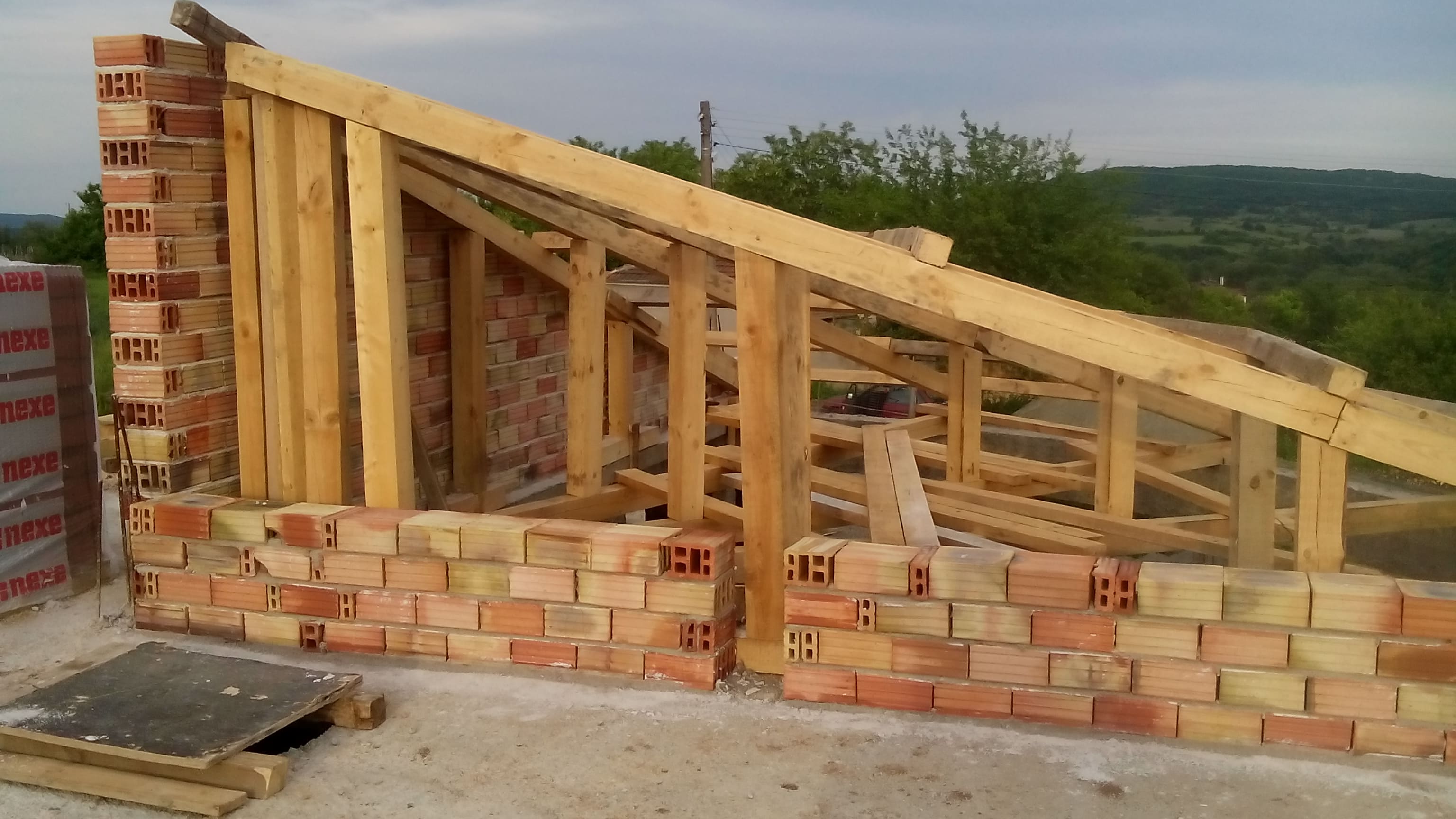Здравейте! Стигнах до някъде...снимките показват. Питането ми е как да продължа нагоре с фермите? Искам да се вижда това, което съм лакирал /опит за някакво състаряване/, но да сложа изолация 10-15см, и основно с какво да затворя? Гипскартон или ламперия?