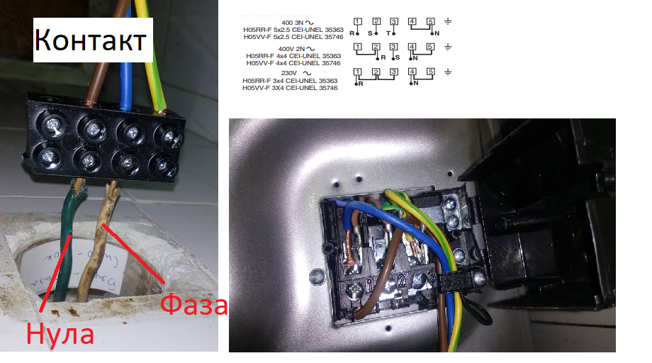 Разбра се, че сме объркали свързването и сме свързали там където трябва да е нулата е фаза и там където е фазата е нула. Тогава не разбрахме и пуснахме за малко котлоните, с презумпцията че всичко е свързано както трябва, за да видим дали работи нормално печката. После се разбра, че се е объркало свързването и го оправихме, защото имаше ток по корпуса.