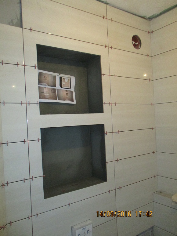 Можем, правим даже симетрично спрямо плочките, но не го харесвам, виждам повече логика и практичност в една голяма ниша, която разделена със стъклени лавици, ако има и осветление, то си ...
