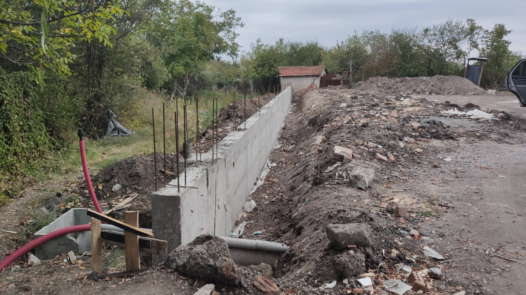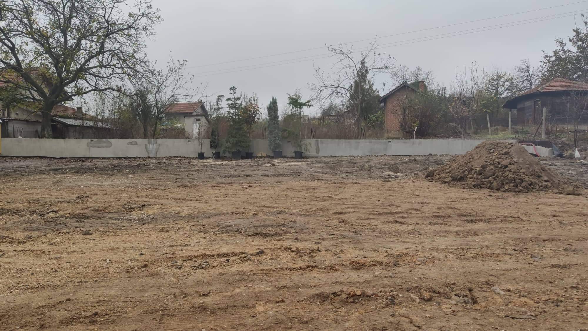 В общи линии всичко е точно с тока и водата вече съм окей, приключих с насипването и подравняването и дръпнах две оградни подпорни стени по 30 и 34 метра от дългите страни на парцела, понеже са ми важни да презимуват за слягане..