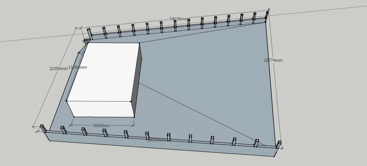 Проблема ми е с тази от долния край до дерето, в което се очаква да се отича дъждовната вода, понеже е 34 метра на височина е от 1.3 до 1.6м, та се замислям какво да правя преди да заровим изкопите около нея.