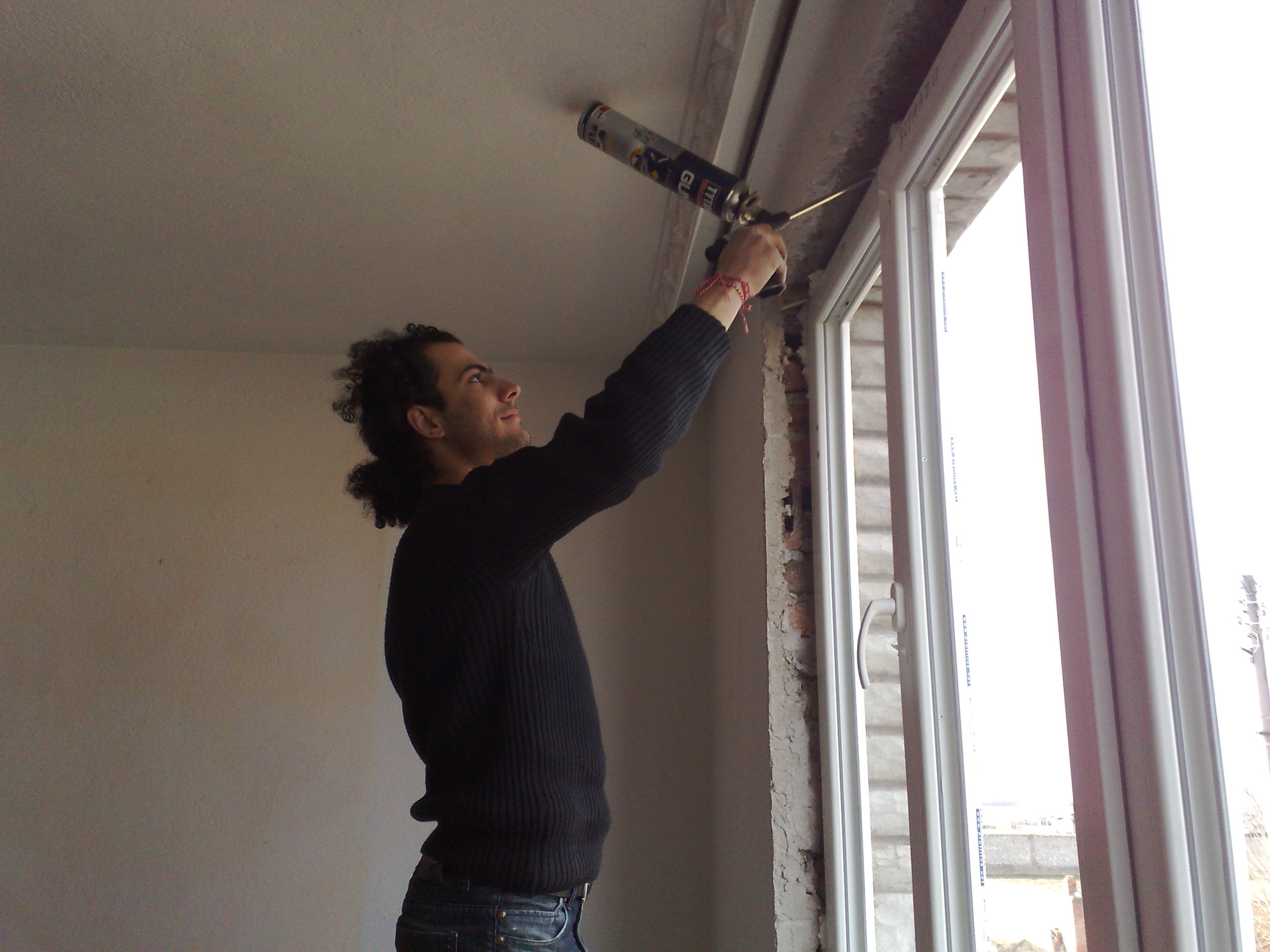 Ето ни и нас в работна среда! Мишо (aristokrata) в типично негов (аристократичен) стил подмени един от нашите прозорци, в бъдещата детска стая.