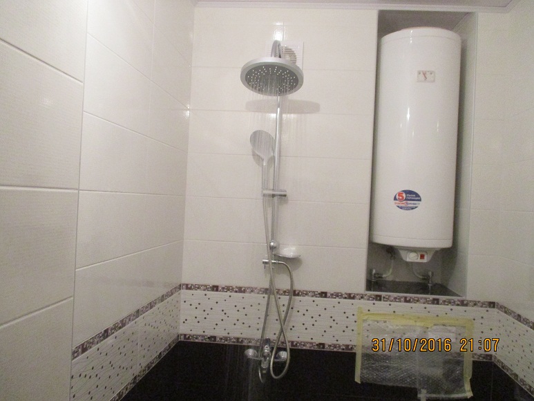В тази малка баня(обърни внимание къде е подов сифон) ще има по нататък подвижна преграда от стъкло, която ще пази от намокряне т.чиния и ще се мърда само при приемане на душ и като цяло няма да заема място и да пречи.