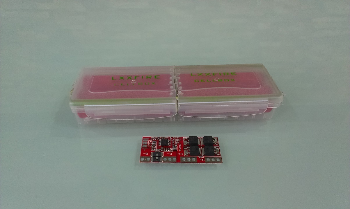 Ще разкажа процедурата в снимки, като от този червения 4 cells BMS нещо не съм много доволен. Има гадната склонност да прекъсва зареждането без да има някаква явна причина. Клетките са проверени и четирите през зарядно TURNIGY и волтажите и капацитета им са наред и реални. Panasonik 3.7v 3500ma/h 10А номинален разряд. BMS-а също е подбран да бъде подходящ, 4 клетки, charging cut 4.2v , discharging cut off 3 v 10A номинален ток без охлаждане, 15А с охлаждане и моментен до 30А. Исках да взема от зеления, който съм снимал 2-3 поста по-нагоре в темата, но е с изчерпана наличност в момента.