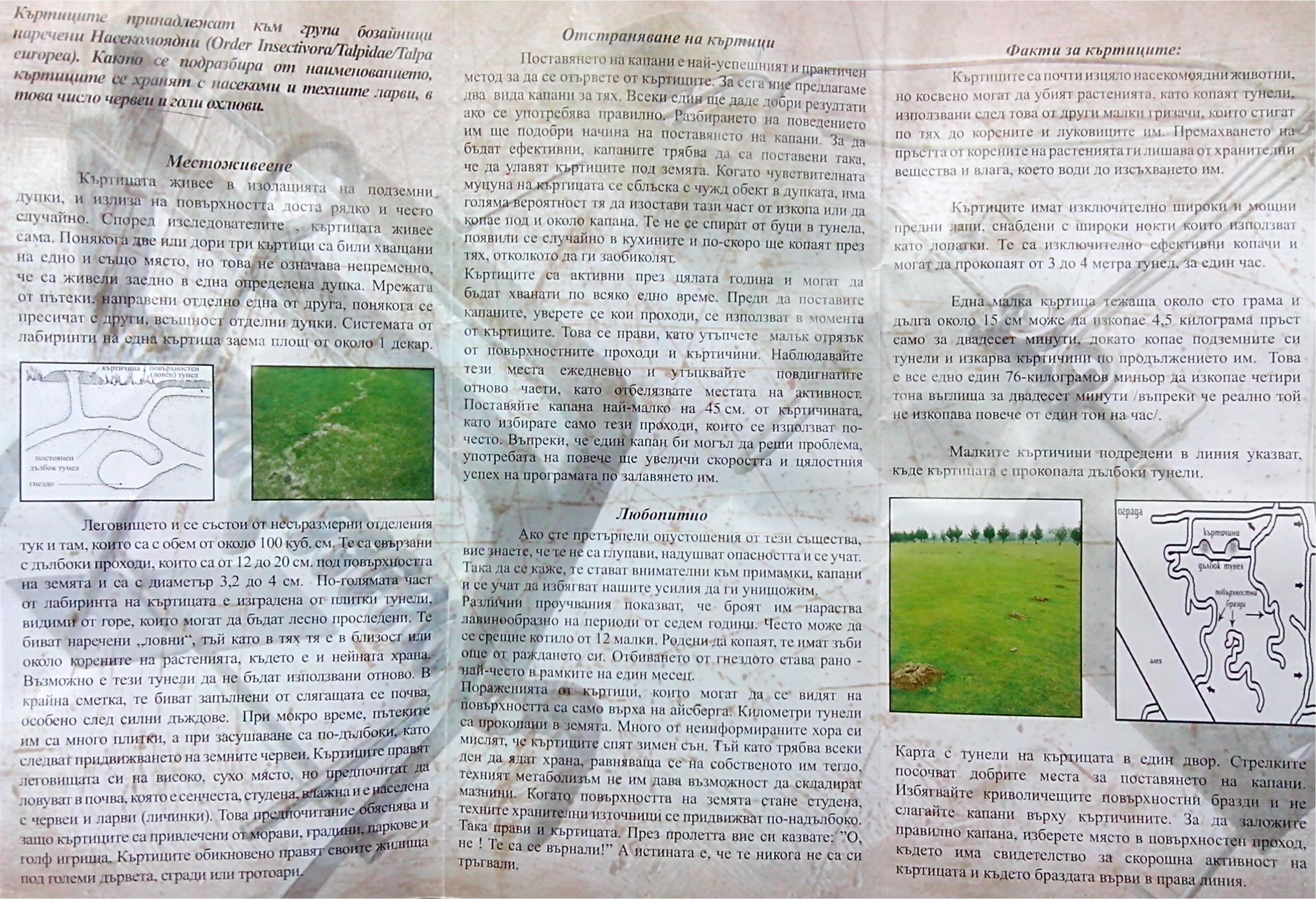 Моите им видях сметката с тройки. Закрепвате здраво една голяма тройка за стоманизирана тел и я вкарвате навътре в дупката около 30 см. като връзвате телта за някое колче. Дупката се оставя отворена. Ако е прясна дупката идва до 10-15 мин за да си я зарови. Като я запуши се връща и се надява на тройката. Вадиш тепаш и пак зареждаш. 50% е успеваемостта горе долу.Тази година едно не съм видял. Явно съм ги свършил.