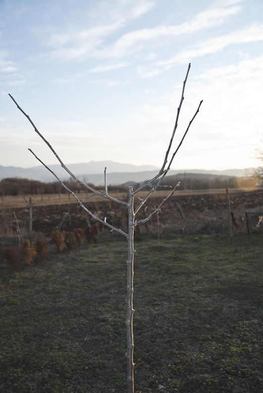 6.Крушата е сята есента и сега и подрязах само върха на височина около 80/90см.
