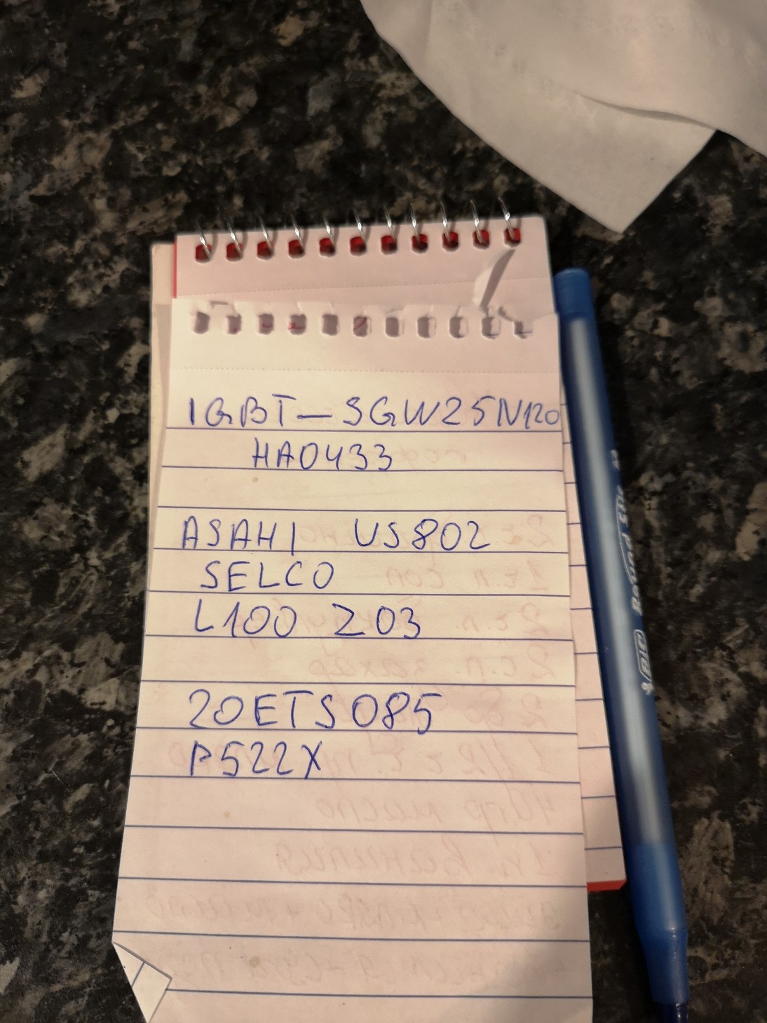 Ее хидра стига де. В Англия съм и тая машина ни трябва за работа. Поръчах частите от американски сайт. Днес беше пробата и пак си светна.... Дали защото смених дано един от четирите игбт. Утре ще ги смъкна отново за проверка. Ще откача греца и ще сглобя една пробна лампа за да включвам през нея. Ще подам напрежение на входа през лампата да видя дали двата трансформатора работят. Сякаш ми се видя че светна нещо отвътре. Ама откъде.. Знам че дистанционно зор се ремонтира , ама тука е България. Правим каквото можем.