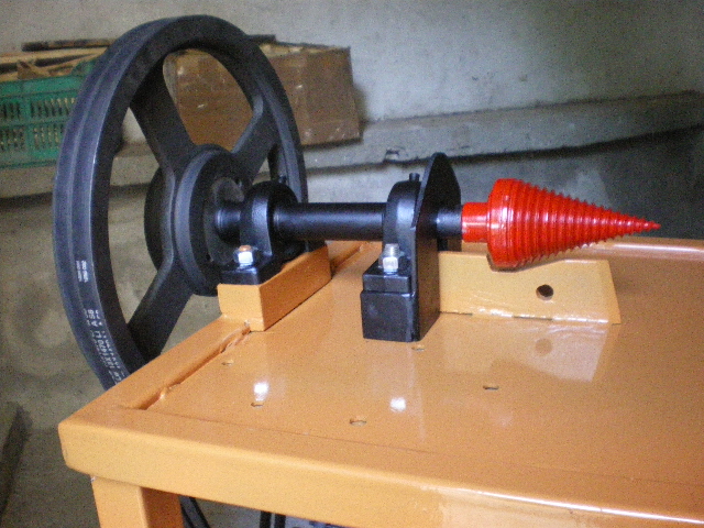 Здравейте. Виждам че темата е от преди няколко месеца но тъй като вече имам опит с въпросната машина искам да споделя моя опит. Цепенвто става бързо и лесно.По-бързо от която и да е хидравлична преса. 10 куб.бяха нацепени и наредени за 2 дни без много зор и без да се пипне брадва. Конуса както и цялата машина съм правил сам. Конуса е ф-70 мм.лява резба със стъпка 6 мм. Мотора е 2.2 кв,2650 об/мин но с ремъчните шайби е сведен на 600 0б.мин.Оказа се че мотора е слаб за по-големи и чепати кютуци и на няколко пъти спира. Другият недостатък е подаването с ръка.На няколко пъти дървото се завърташе и имам лош спомен,,,счупен пръст. Затова направих изменение на машината като монтирах подавач / ако може така да се нарече / и сега няма опасност от сакатлъци. На снимките е стария вариант и ако имате интерес ще пусна снимки и от новият,подобрен вариант. Колкото до конуса не виждам причина за закалка.След 10 куб.върха на конуса както и цялата резба не е мръднала. Дано съм бил в полза за някой от вас. Явор