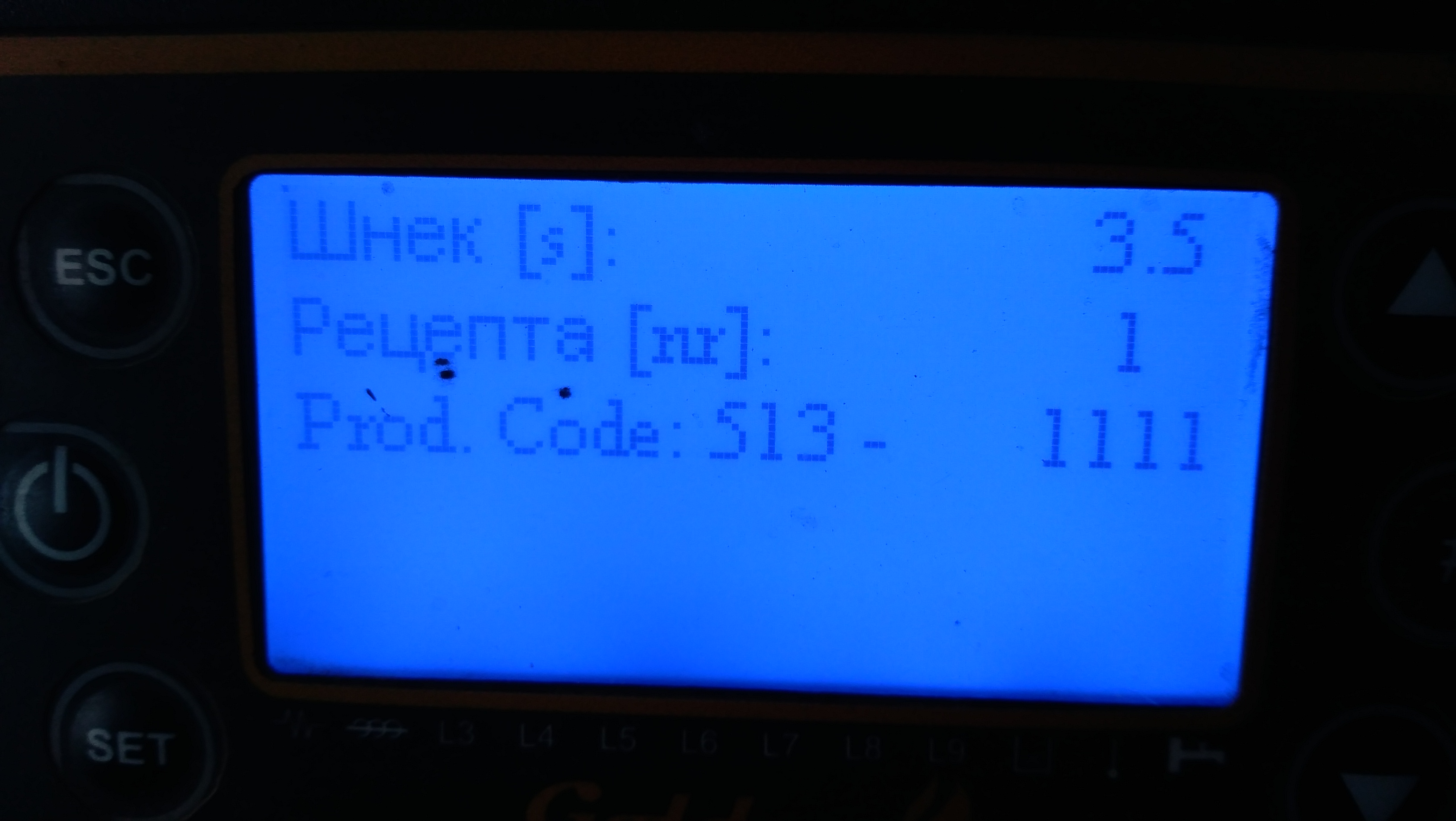 в момента секундите на шнека за мощност 5 са 9.5 интервала е през 36 секунди скороста на вентилатора е 126 за мощност 5