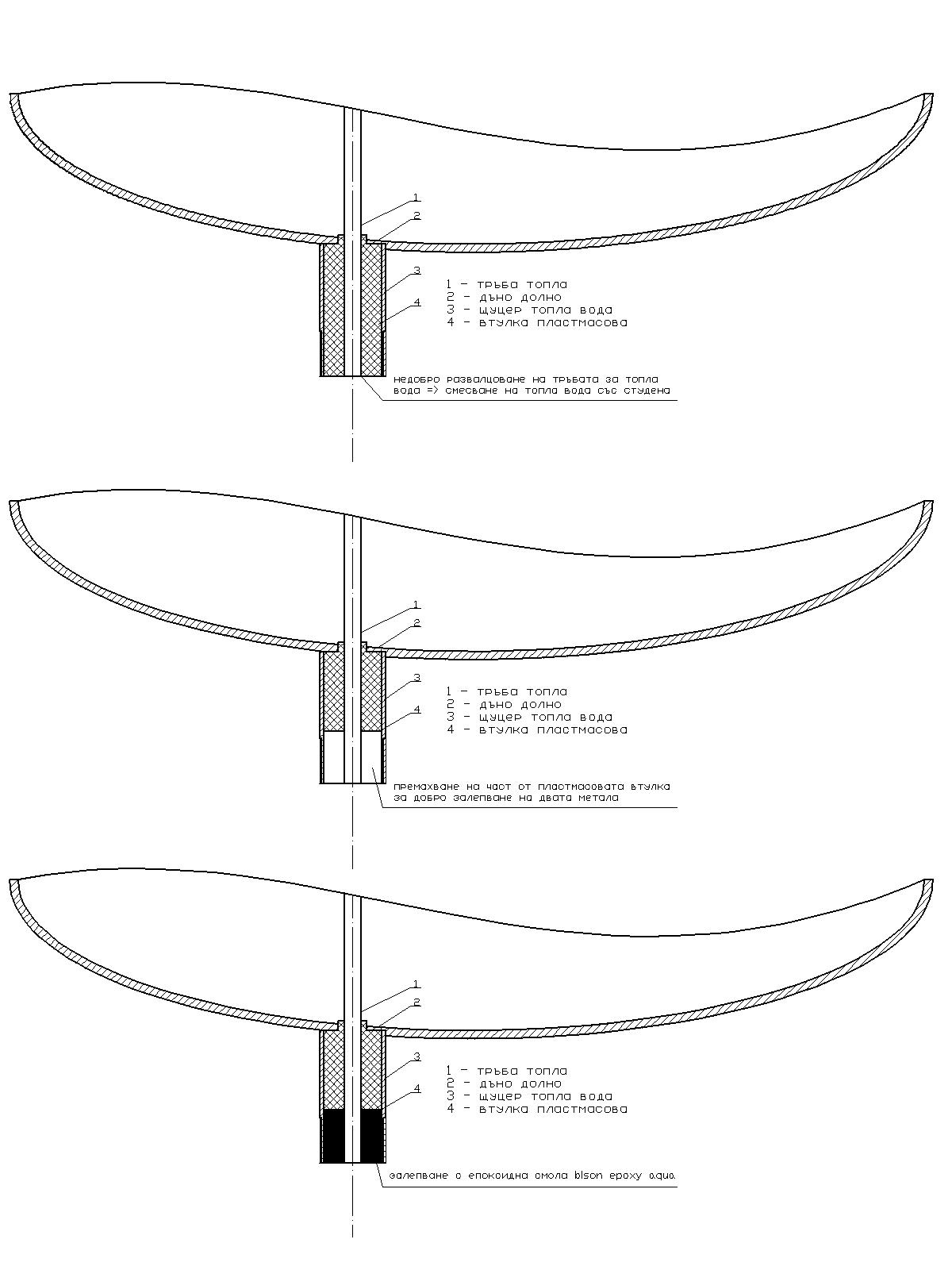 Здравейте, реших и аз да напиша една тема. Бойлера е 80 л. на 5 години и от известно време водата "свършваше" ( в случая се е смесвала в бойлера преди смесването в смесителя на душа). От начало мислех, че самата тръба се е пробила, но като отворих бойлера видях, че е от неръждаема стомана. Това ме накара да проверя как е уплътнена тръбата към щуцера. Оказа се, че проблема е некачествено развалцоване към някакъв вид пластмаса.