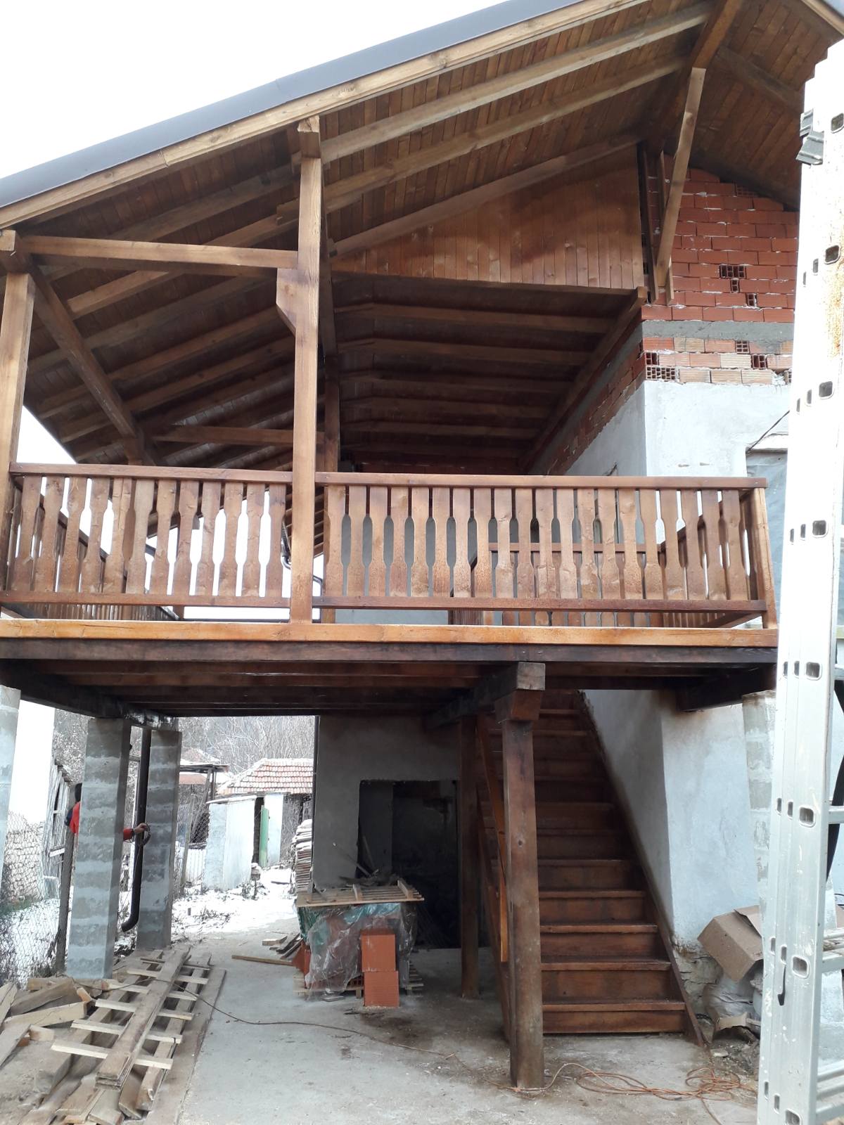 От вотрият майстор като цяло съм доволен - човекът се ангажира в средата на декември да ми довърши покрива, верандата и стъпалата към нея. Той направи хоризонталните спънки на верандата, които свързват вертикалните греди помежду им и към къщата. Преди това нищо не беще спънато хоризонтално.