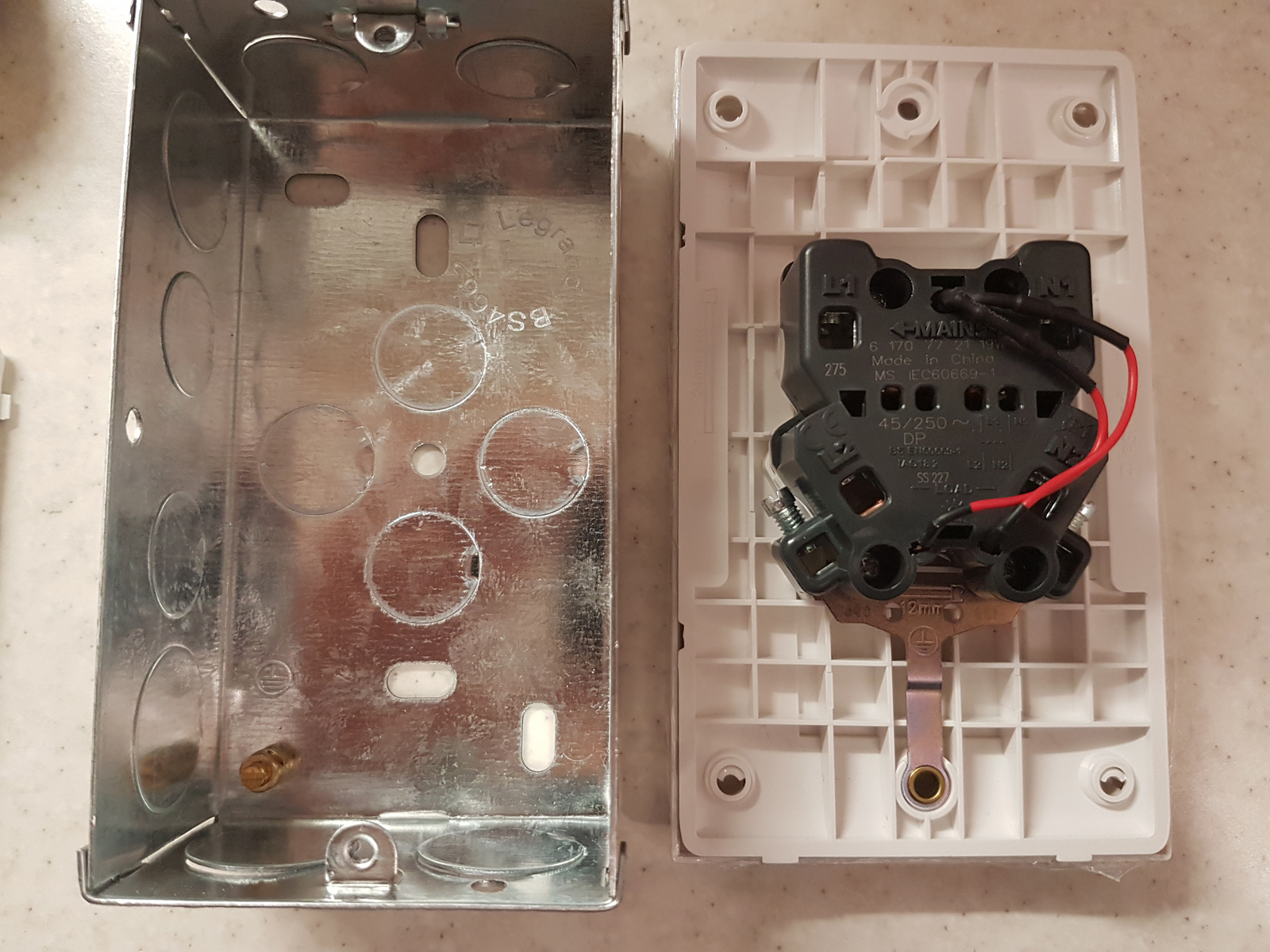 бойлерът ми е свързан през таблото от първата снимка. Както се вижда, копчето се счупи и съм решил да го заменя с по-големия вариант на Legrand който е с близки до този размери. Въпросът ми е как е редно да бъде свързан новия ключ. Срещнах коментари във форума, че при двупроводна инсталация не е препоръчително да се прекъсва нулевия проводник както е при мен.