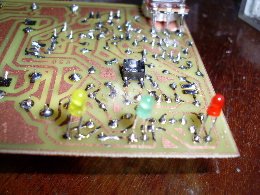 1. светодиодите са откъм страната на пистите и в момента ги запоявам директно върху тях. Искам да се запояват от другата страна на платката.