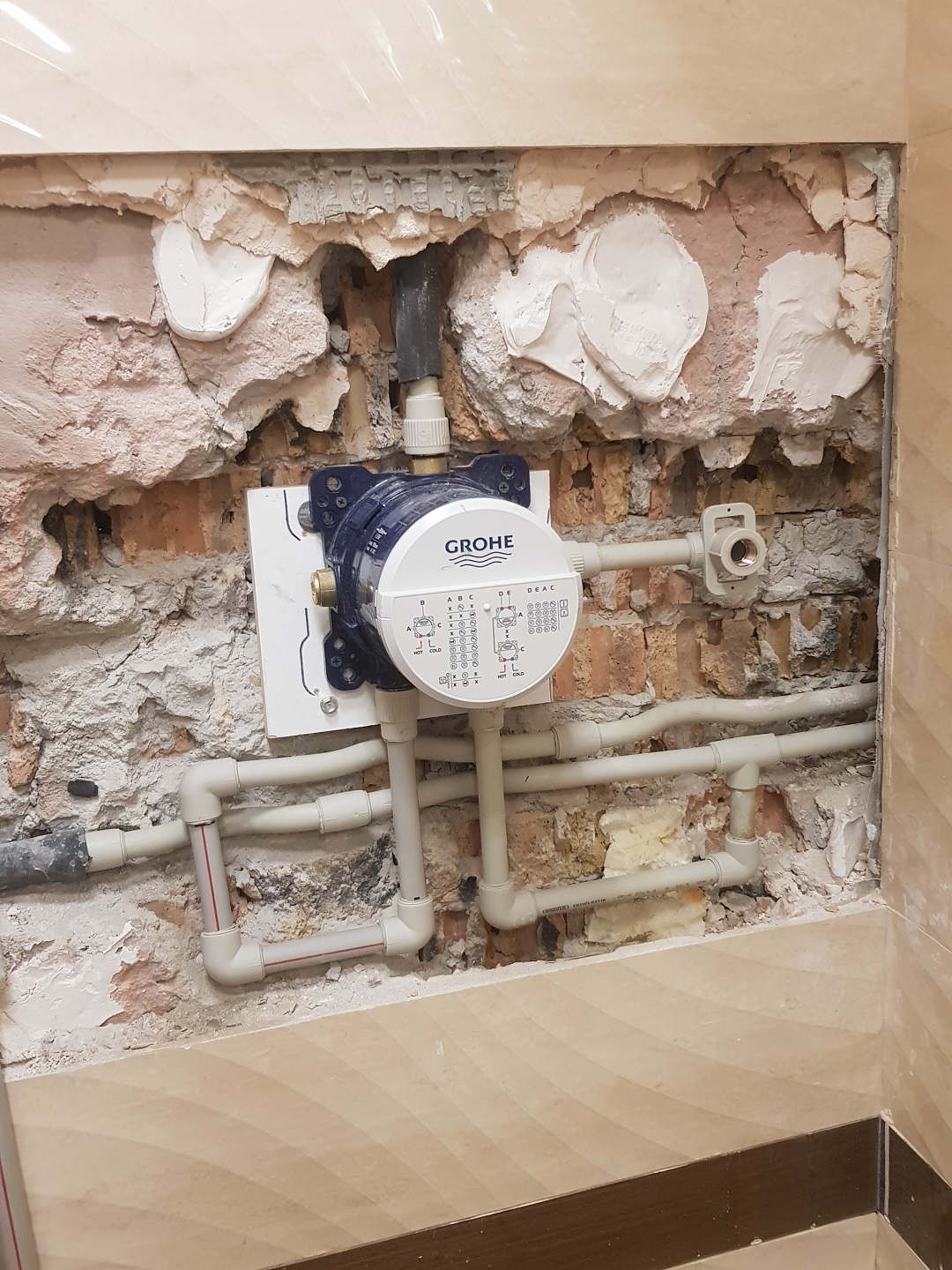 Най-накрая се реших да сменя вграденият смесител на душа (марка Palazani) с нов термостатен на Grohe Rapido с панел Grohe Smartcontrol, с два превключателя - за душ пита и слушалка. Ще трябва да сваля поне една-две плочи за да разкрия старият смесител. Търся съвет от хора , които са монтирали такива или подобни: Как да го подвържа към ППР тръбите? Да използвам директни ППР преходи с външна резба, с които в момента е стария смесител или да използвам разглобяем ППР холендър? При ворият вариант ще мога да го разглобявам ако се наложи, но не знам дали е сигурна връзката. Също така може да ми помогнете, като ми дадете съвет за вариант на новата схема на свързване. :?