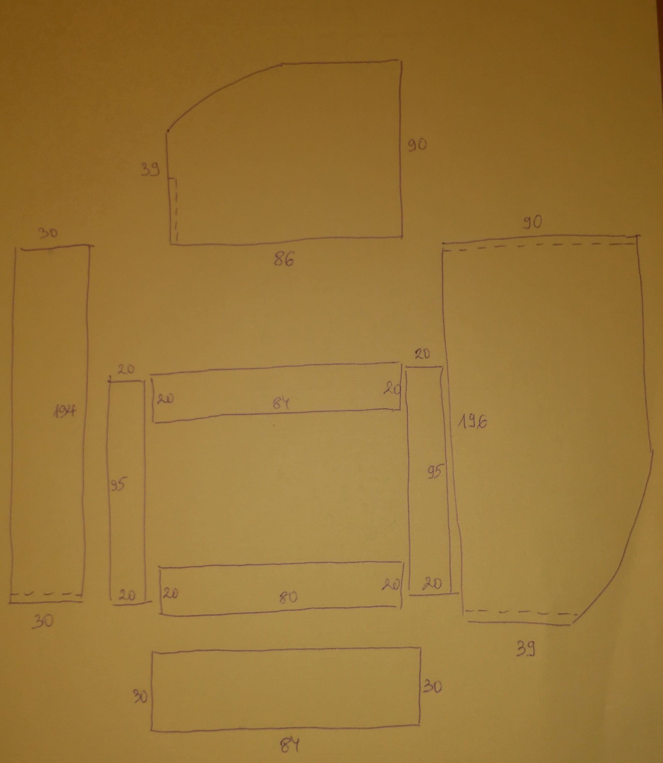 Преди няколко месеца един познат ми обеща да ми направи детското легло. Купих матрак и подматрачна рамка, но се оказа че моят познат така и няма да намери време за леглото. Потърсих фирми, които се занимават с поръчкови мебели, но те ми обявиха цени от над 250 лв., което ми се струва доста в предвид че съм дал толкова и за матрака. Остана алтернативата да си поръчам сам плоскостите и да си го сглобя, все пак не е космически кораб. Набелязах 2-3 фирми за разкрой и обкантване във Варна. Леглото трябва да представлява нещо като снимката по-долу. Подматрачната рамка е 82Х190, матрака малко стърчи от нея. Прикачил съм и схема на частите, която е много далеч от професионална, но дава основна представа какво трябва да бъде. Въпросите ми са: оразмеряването правилно ли е, ако има грешки, може ли някой да помогне да ги поправим? Обкантването да бъде ли с дебел кант? Спалнята, която ползваме в момента е с тънък и не е мръднала 10 г. Да се занимавам ли с този "конструктор за сглобяване" или да отивам при професионалисти? Всякаква помощ е добре дошла.