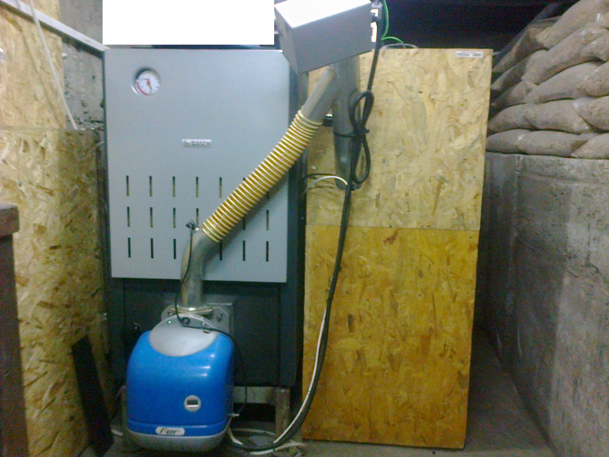 Така, след препоръка от човека, който изгради инсталацията ми, станах член на "клуба Пелетерм" - Pelletherm v2 BIO, 30 кв. Ползвам го на заместващото гориво - пелети.