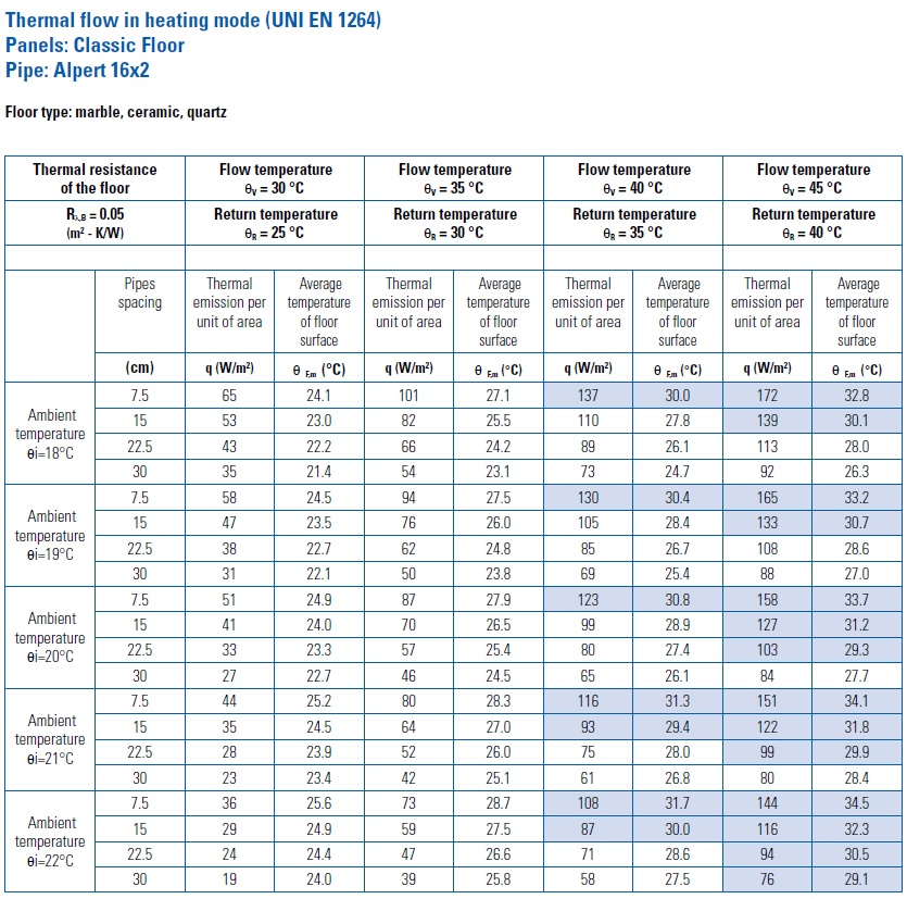 Мощността, отдавана от пода в крайна сметка зависи от неговата площ и изиксването да не превишава 27-8С.