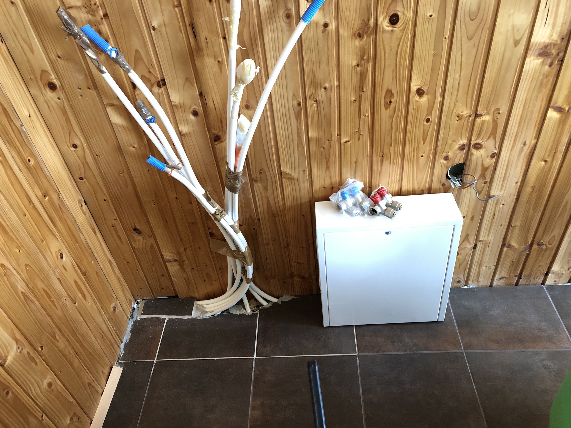 Печката е 9kW но не е свързана с подовото. И естествено топли само един етаж. Даже и на него не е комфортно - в едната част е твърде топло, а в другата - не толкова.