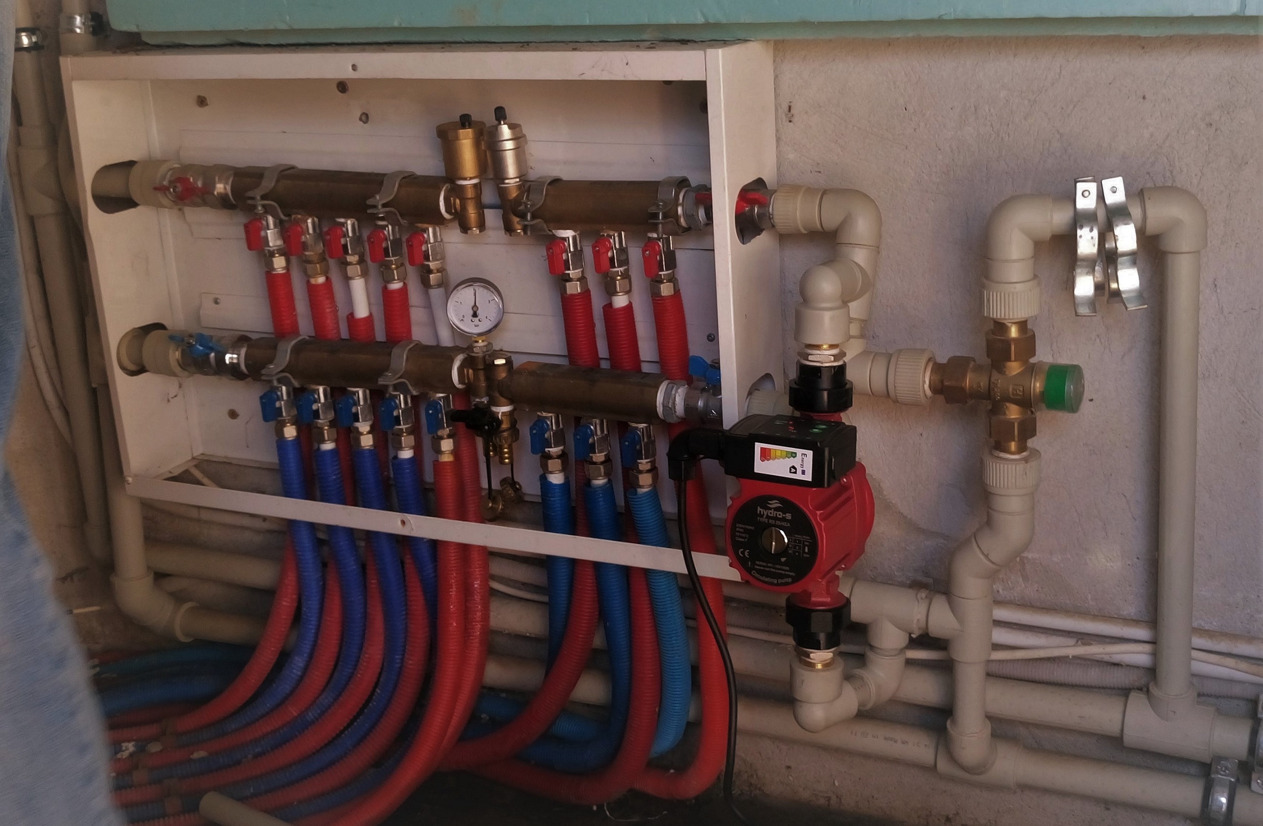 filmatoplo написа:Утре ще свързвам котел към сграда на приземния етаж с водно подово и радиатори на горния етаж . От изхода на котела ще отклоня за двете зони с две отделни помпи .Само пред помпата на подовото ще сложа трипътен смесителен вентил и това е .Всяка помпа с възвратен клапан ,когато и да се включи някоя от помпите - няма да пречи или да се дублира поток .Може и така.