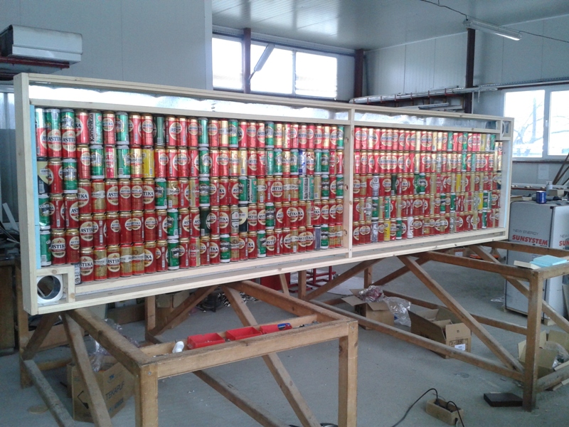 Аз вече събрах към 250 бирени кутийки и сега остава да го направя, но времето трябва да се постопли. След много гледане и четене, стигнах до решението да изрежа капачката на кена, а дъното да го разпробия на 3 места. Все още се чудя какъв да е челния панел, дали стъкло или поликарбонат и ако е стъкло има ли смисъл от стъклопакет. Все пак се стремим към сравнително евтин вариант, иначе могат да се направят много подобрения.