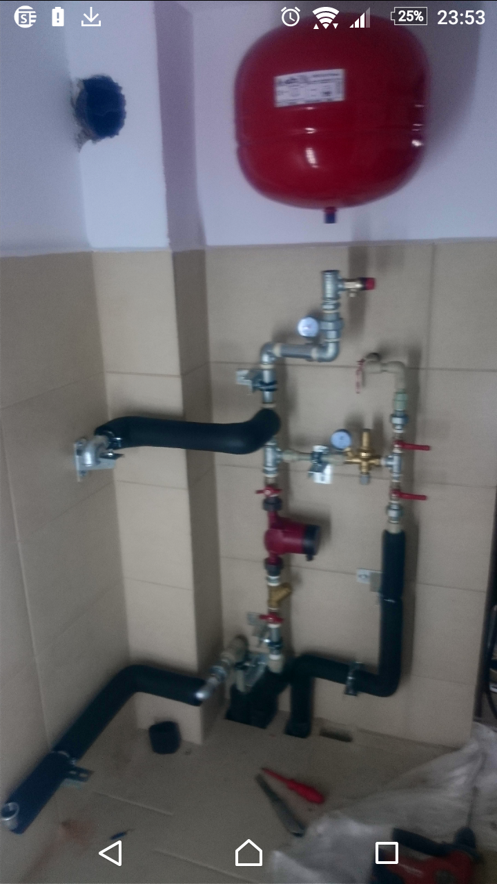 Отоплителна система в къща 90 кв обща площ на два етажа,с колектор на етаж, тоест два колектора, магистрала 1" полипропилен стабелизиран, след колекторите AL pex под замазка, преминаване под земята от къщата до гаража 7 метра в изолация тръбна aeroflex, и кутия от фибран.до котела имам тръбна разводка от цинкова тръба.