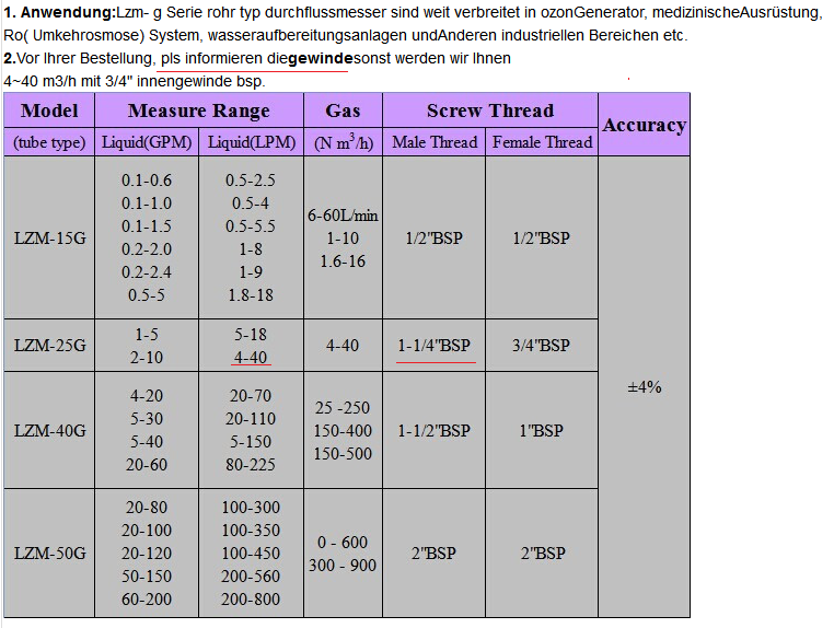 При поръчката трябва да се уточни присъединителния размер! За измерване на количество от 4 до 40 Nm3/h e 1-1/4"BSP.
