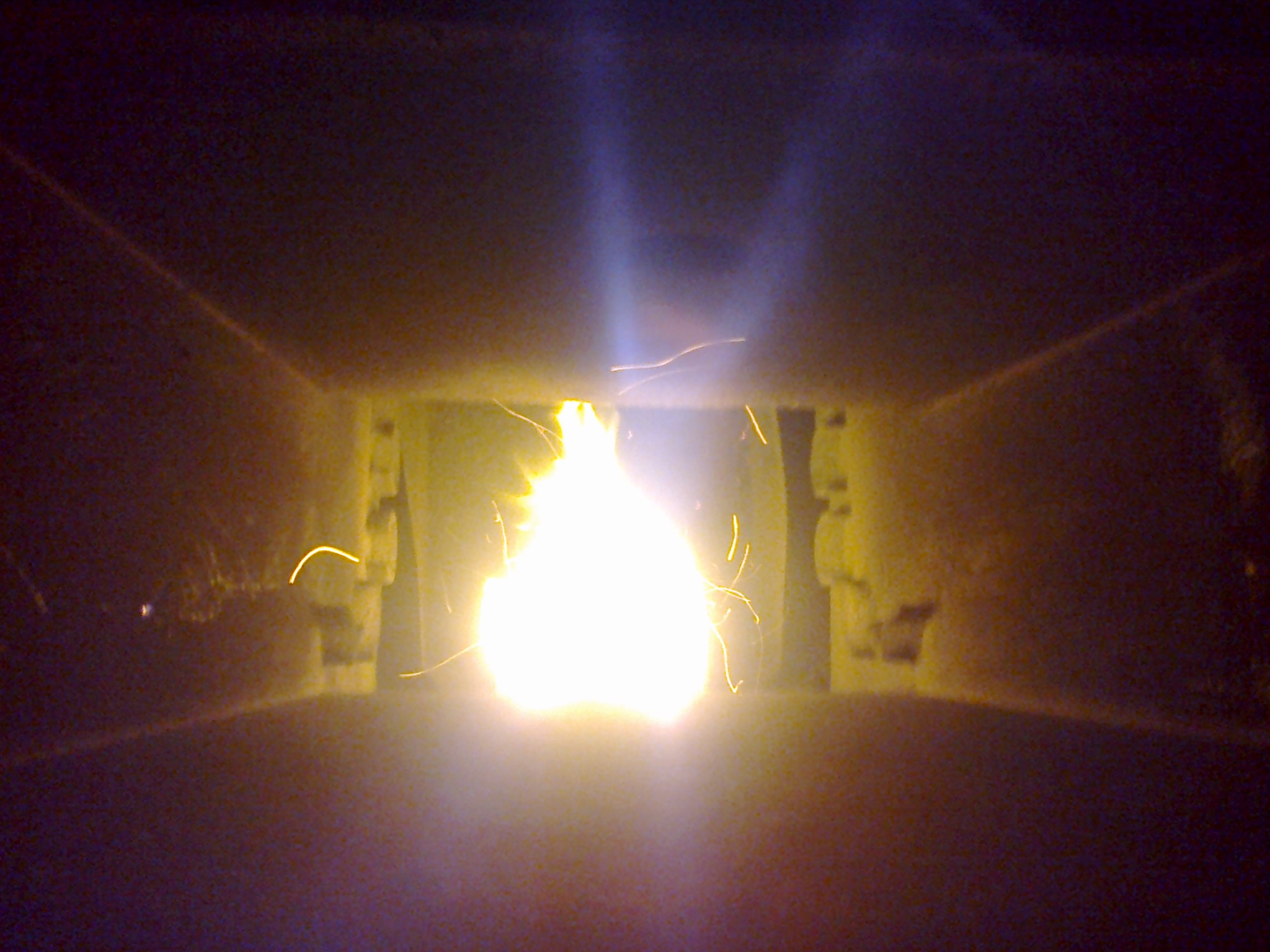 Качвам 2 снимки доколкото може да се види работата със сл. пелети.Потковата която се образува не си личи много на снимката а и е леко по неправилно оформена отколкото на дървесни.