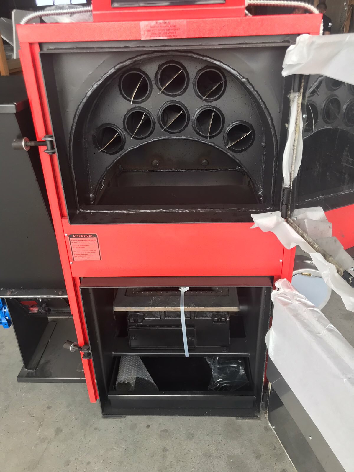 Иначе успях да го запаля с дейната помощ на баща ми. Изпразнихме отново горелката и я напълнихме със смес от Донбас и въпросните Бобовдол, последните няколко сантиметра със слънчогледови пелети и отгоре малко вестник с един наръч чамови подпалили, които запалихме с газова горелка. Вентилаторът започна от 1 и много плавно с подаване на въглища го усилих до 4. Оставих да се разгори хубаво, въпреки топлината вътре, водата спокойно стигна 65 градуса.