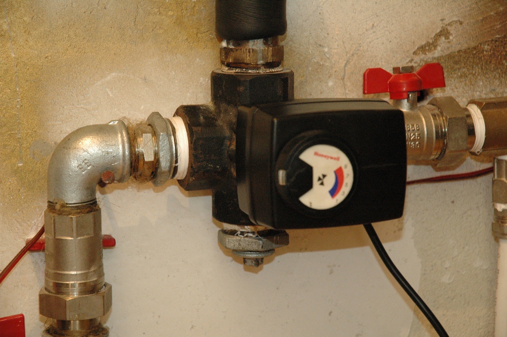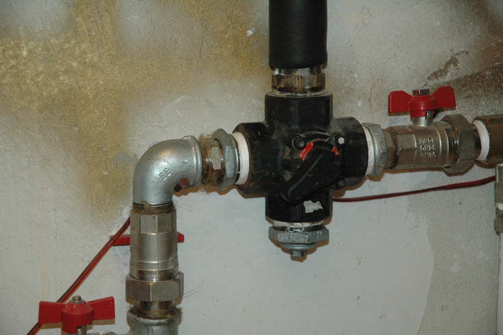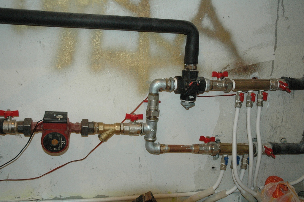 Кажи на фирмата много поздрави (да не кажа да се гръмне)- с 4пътен вентил иска 2 помпи -препоръчително,може и с 1 помпа за радиаторите но зависи от много неща -вентила трябва да е вдигнат 1,40-1,60 м над долния извод на котела , и тръбите да са със светъл отвор минимум фи-50 .