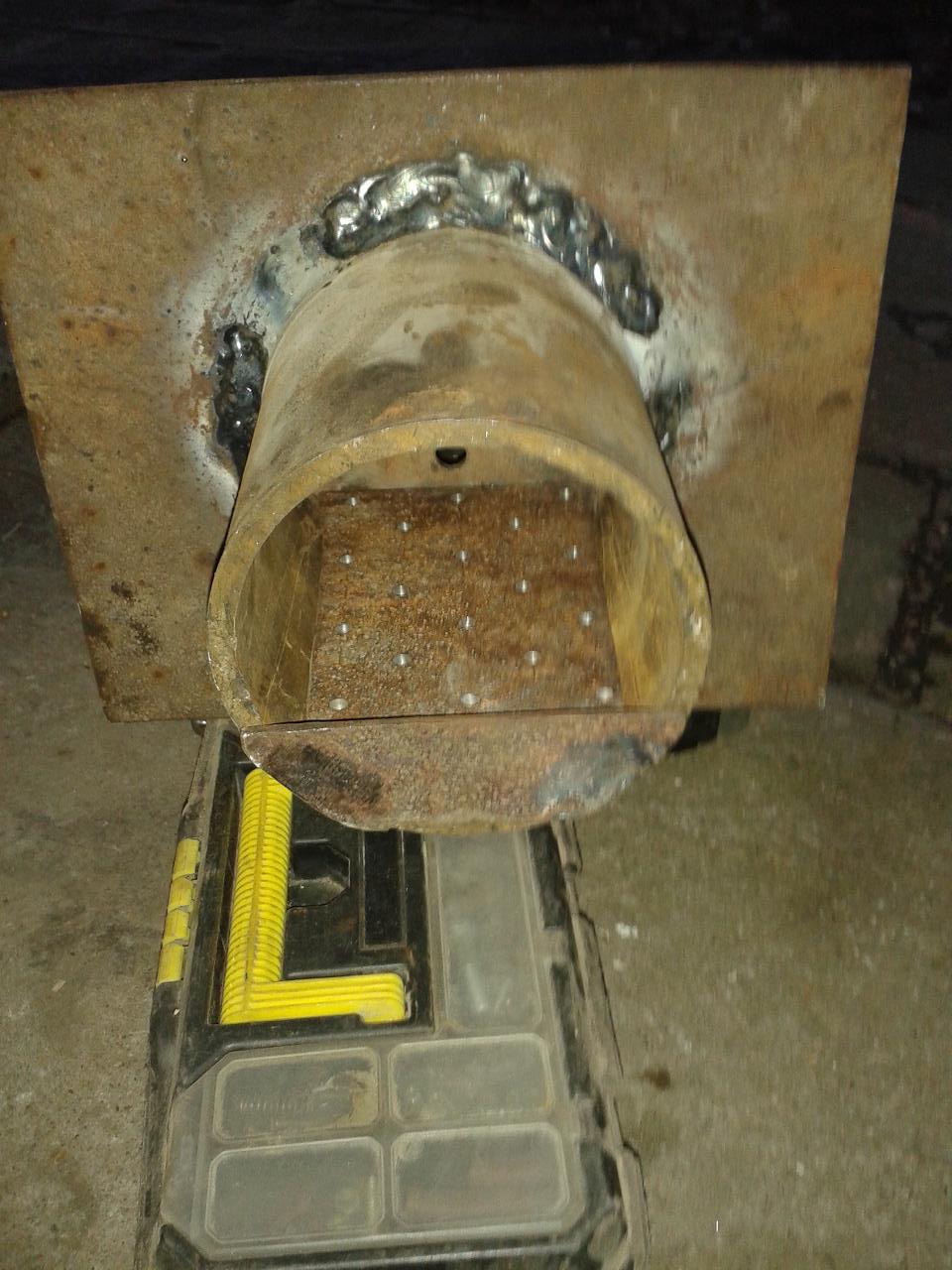привет. след много молби да ми се помогне с заварките накрая се хванах сам. за 3 път живота си докосвам електрожен така, че не коментирайте заварките. :? направих и две пробни запалвания и общо взето се получава. тръбата която е между плочата и капака на вентилатора я няма вече. остава да се направи тръбата по която ще падат пелетите и шнека.