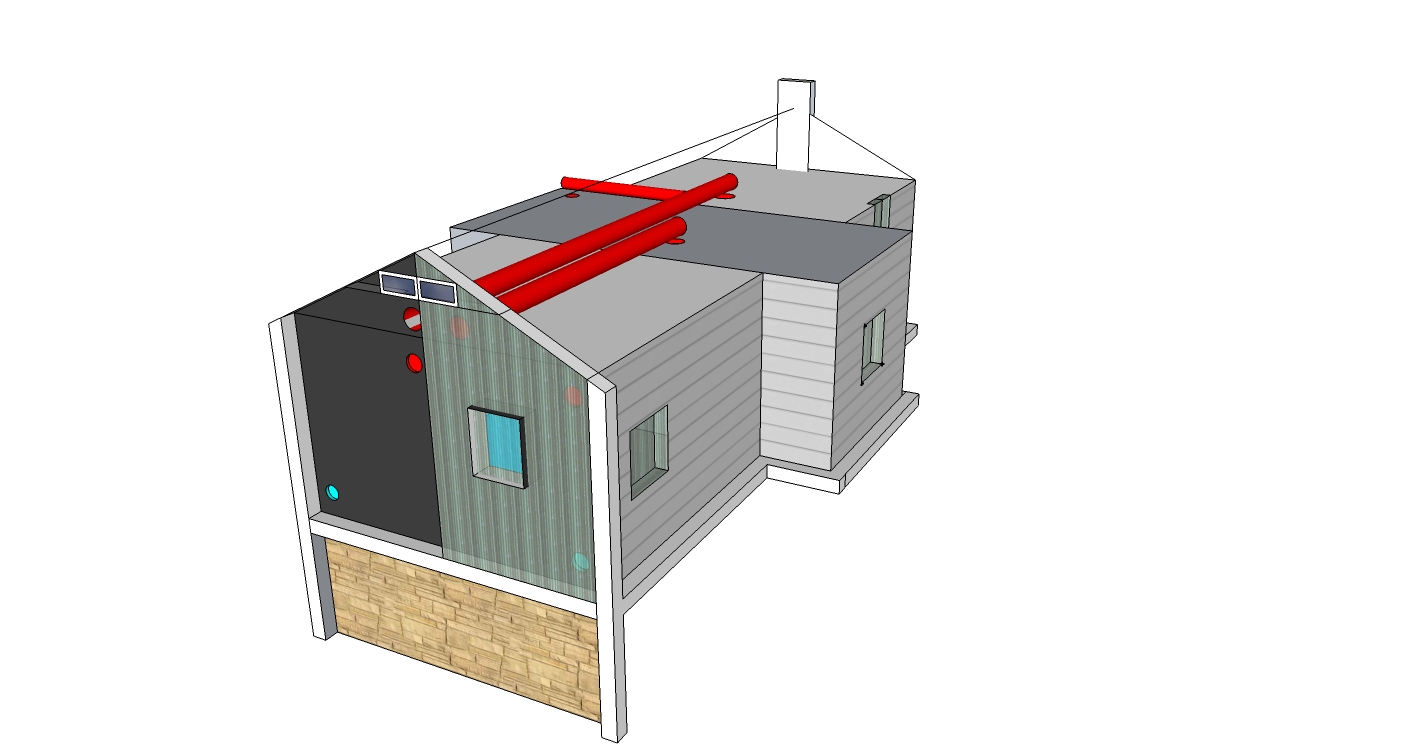 Отдясно добавих греда и малко сайдинг,за да се получи симетрия и да постигна размерите на двете полета да се получат 2м на 3м за да се включа в маскималните размери лист поликарбонат 2,1 Х 6м.
