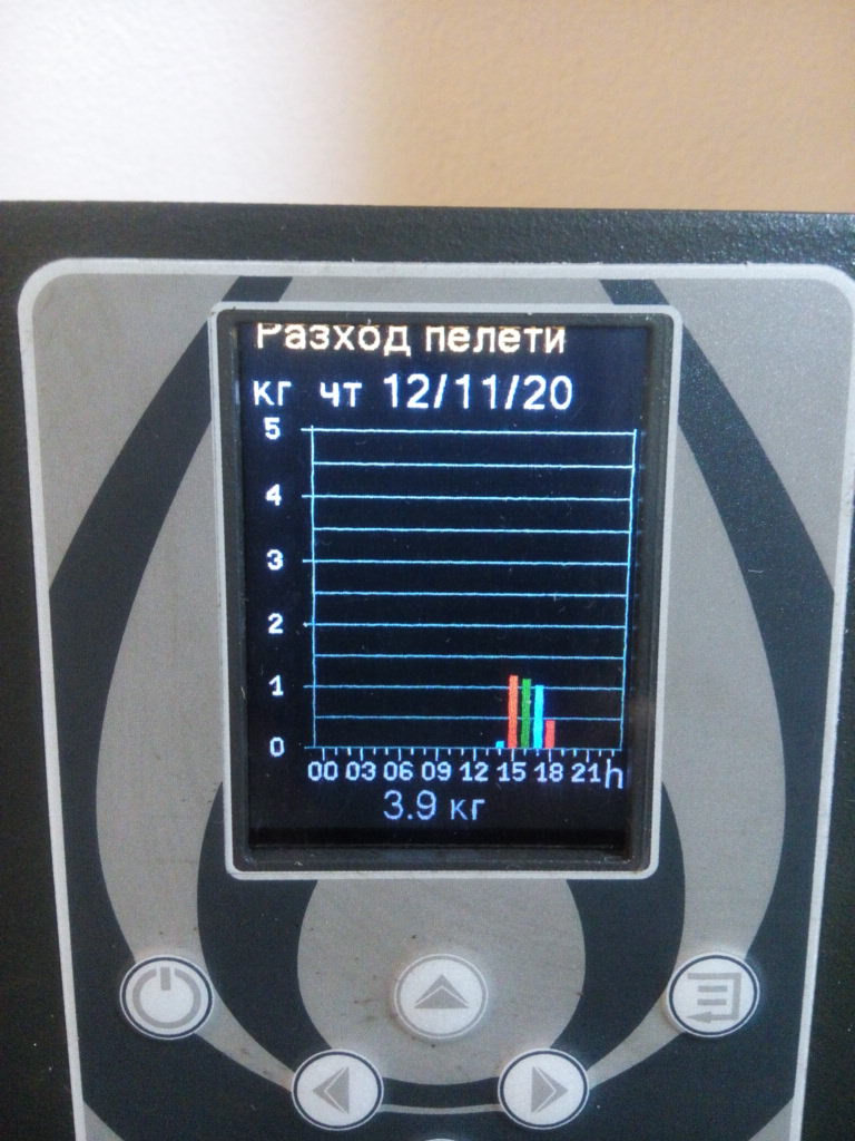 В дневния разход на пелетите. Има синя, зелена и червена чертичка.