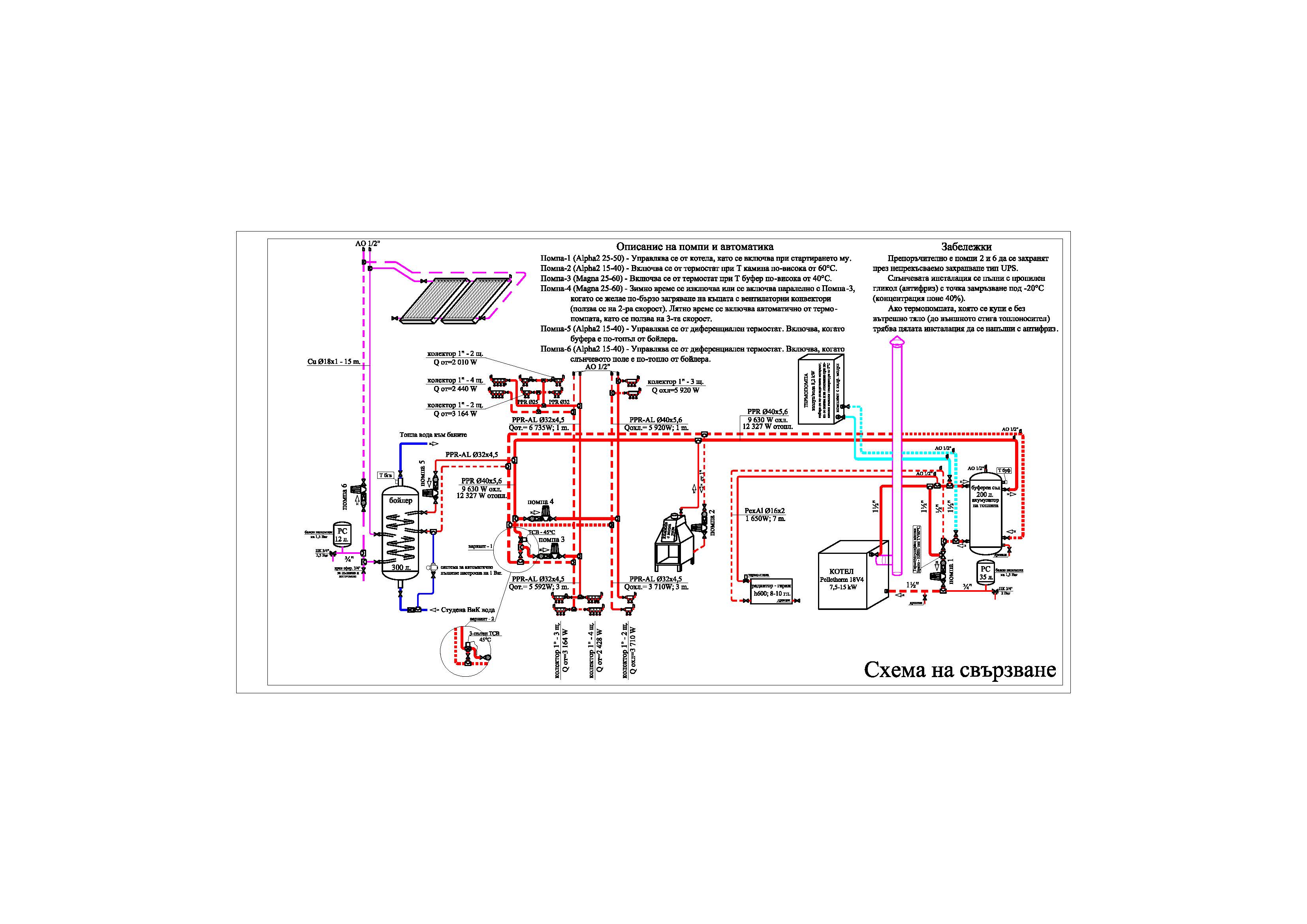 stakoz написа:мисля, че има - разходът ми е постоянен около 2.8-2.9 кг/час дървесни пелети независимо от времето - външна температура и скорост на вятъра (основно работи на мощност Р3 - горелката се регулира по температурата на буфер (настроена на 48С за водно подово) . котелът е само за пелети ( с повече водна риза). при това време работи макс 6 часа, при по студено, под нулата макс 10-11 часа. (отоплявам към 200 м2 с 10 см изолация). LG (Lazar Ganev) е инсталатор и свидетелМоя и той само пелетен наумил съм да му сложа турболатори хем да хванем димните газове и по лесно да почиствам тръбите. Интересно ми е схемата на свързване с буфер каква е.