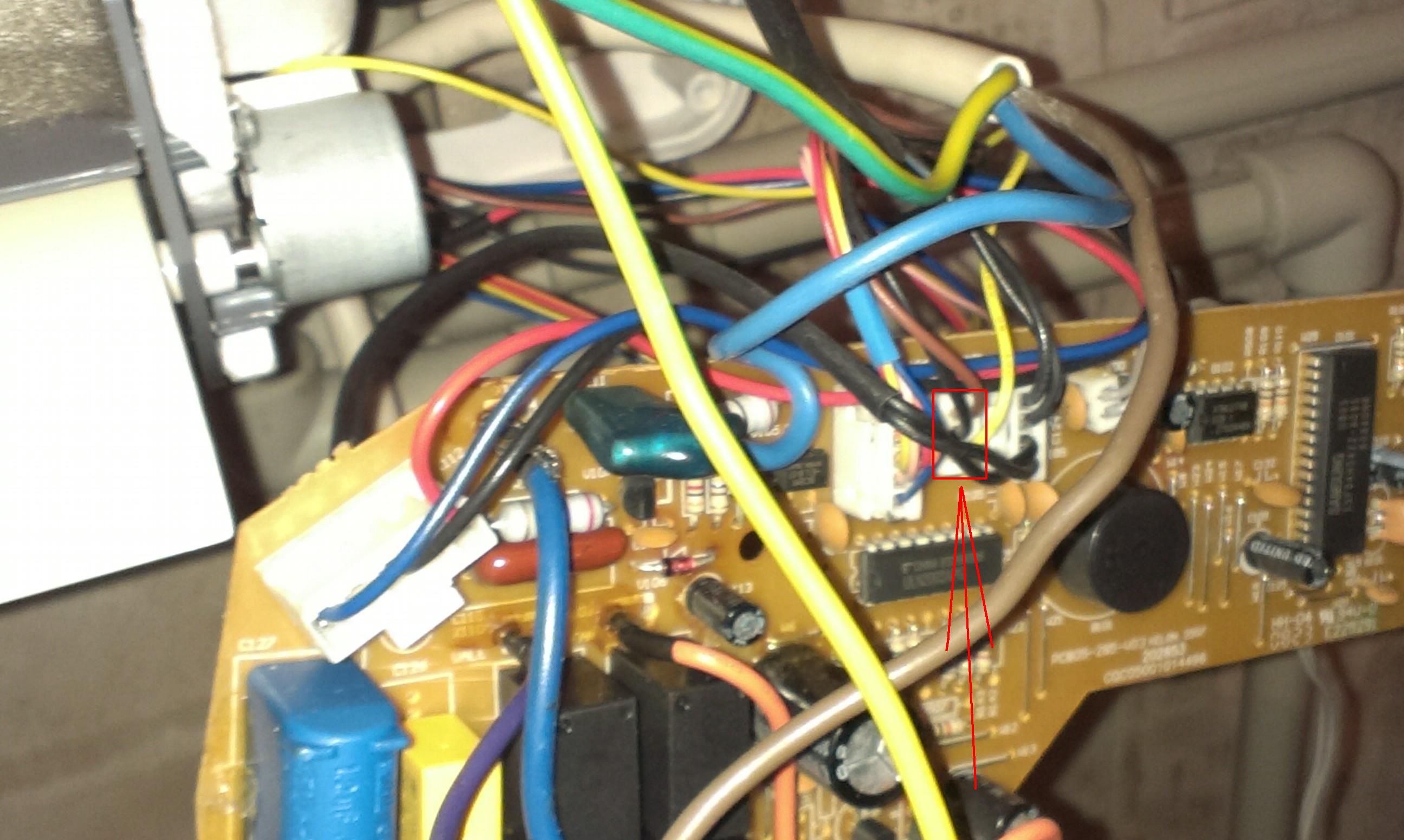 2. Изключваш от тока, дърпаш/изваждаш буксата която съм оградил (кафяв,черен и жълт кабел) доколкото виждам тя отива към мотора. Ако не е тя - търсиш друга букса с такива цветове и дърпаш нея.