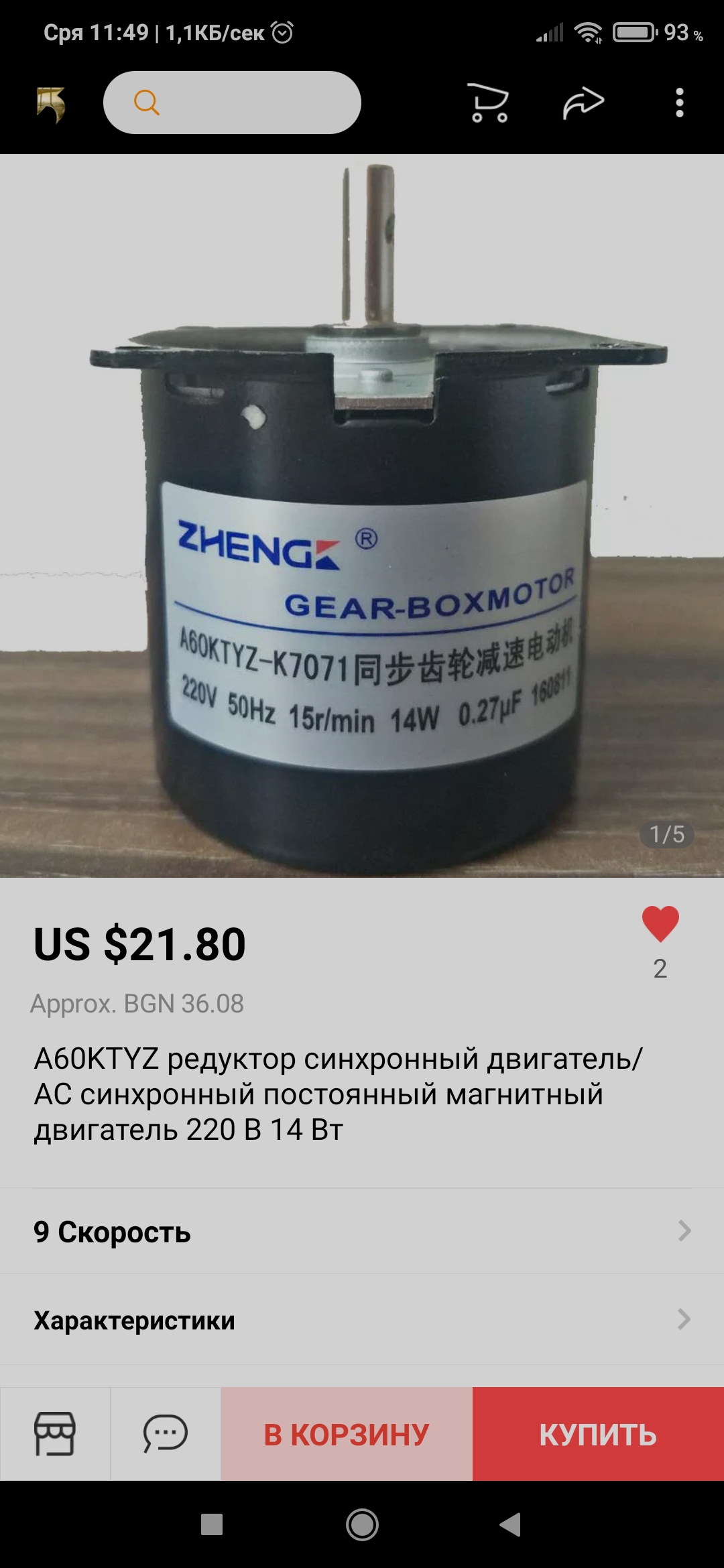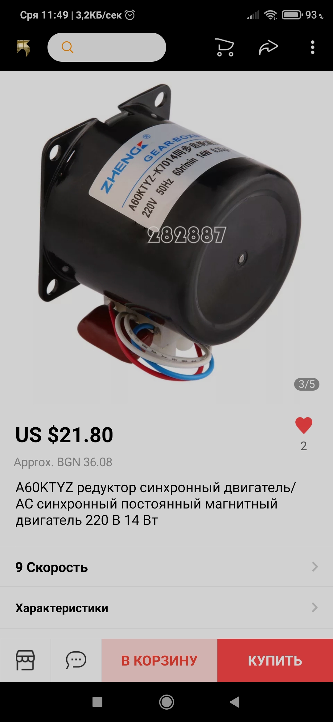 Двигатела е с вграден редуктор 15оборота в мин.